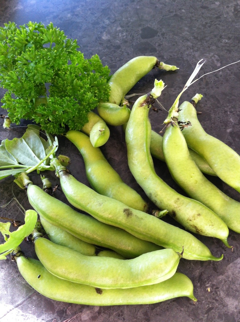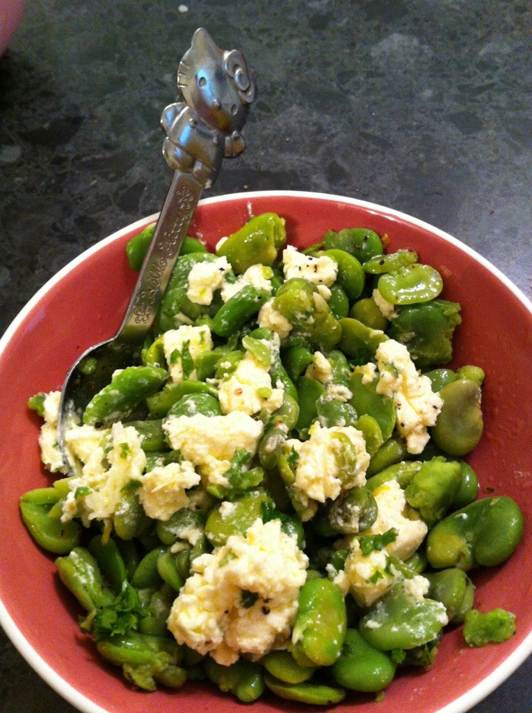 Lamb cutlets, broad bean salad, another salad, scalloped potatoes. Good dinner. Some of the broad beans were from my garden.