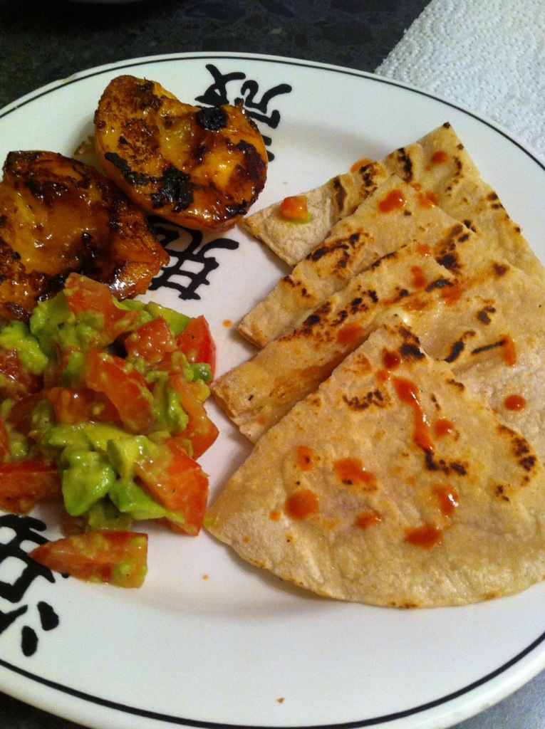I’ve been feeling pretty exhausted this week. I’m hoping in not getting sick again. Didn’t feel particularly inspired with dinner tonight. Ham & cheese quesadilla with guac.