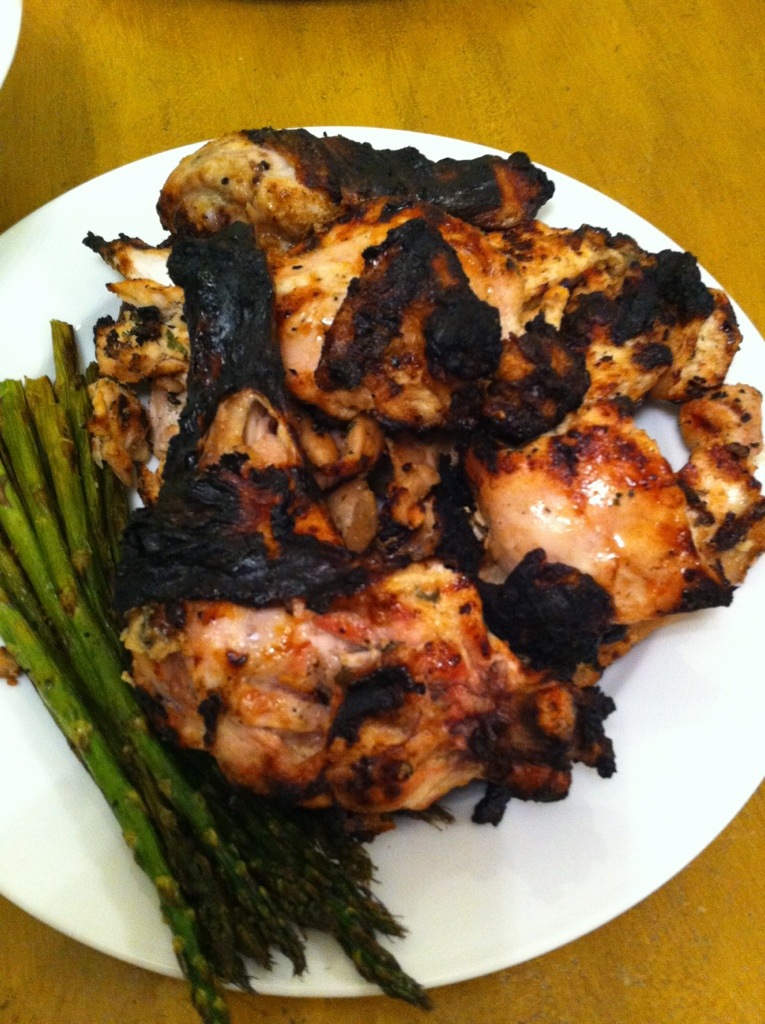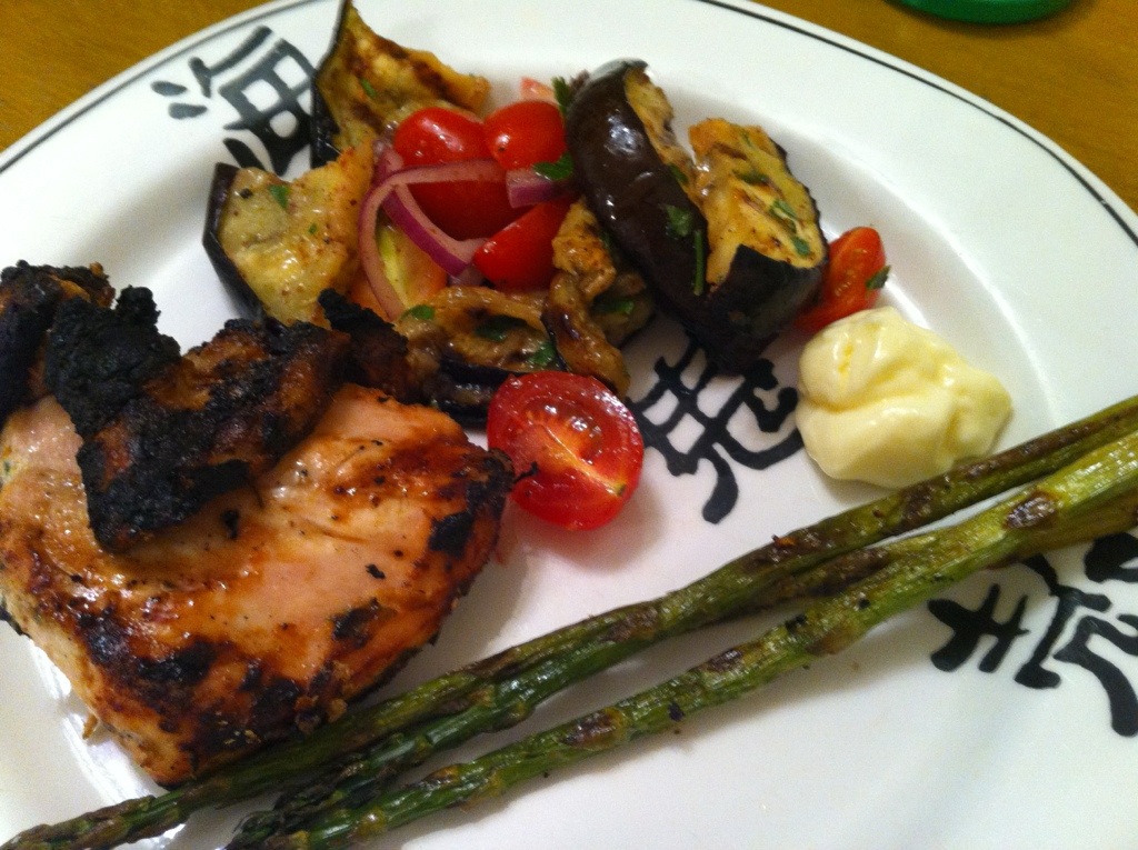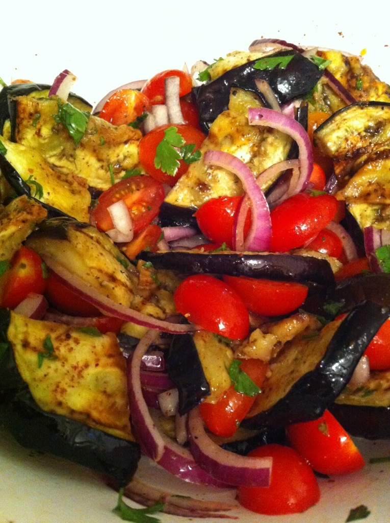 BBQ Lebanese style chicken with eggplant salad.