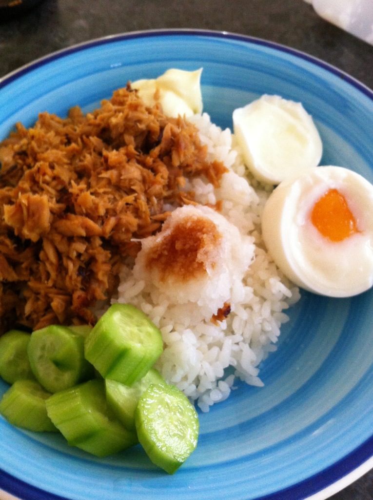 Same as every other Wednesday. Rice with tuna & egg. I should just set my blog to automatically repeat this post every Wednesday.