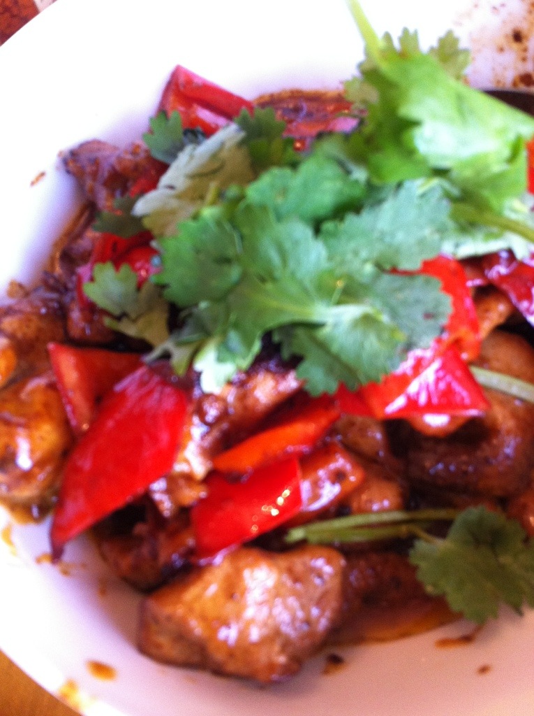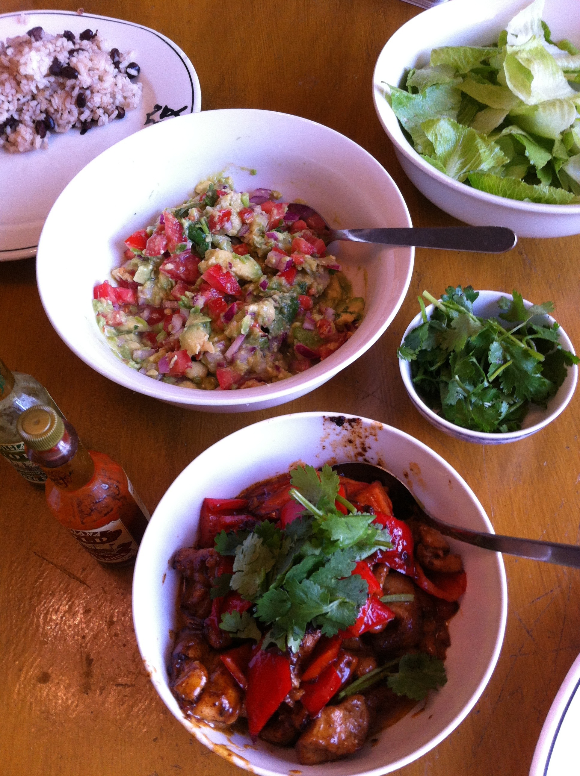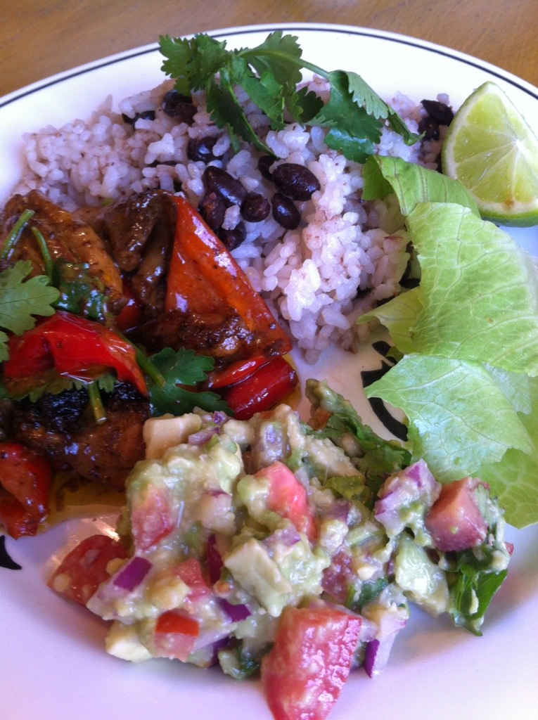 Chipotle chicken, black bean rice and guacamole. Yum!
