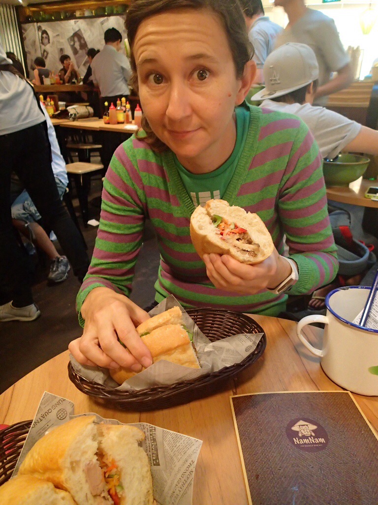 Well we made it to Singapore. I do have a photo of dinner. It was banh mi from a cool Vietnamese place. But we are currently suffering technical difficulties with iPad and camera attachments, so no photo for you right now. sorry!