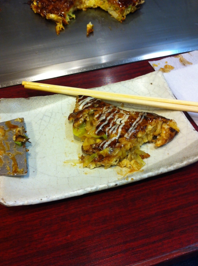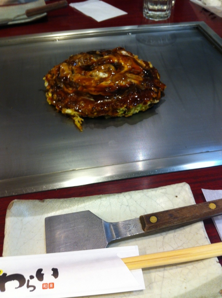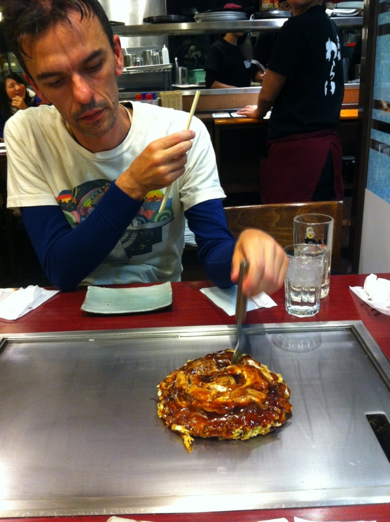 Caught the Shinkansen to Kyoto today. It’s real cold here too. It snowed whilst we were on the train. Checked in to our hotel, then set about exploring the local area. Then headed into Kyoto station where we spent about 8 hours in Yodobashi which is s store that sells pretty much one of everything. After making some good purchases, it was dark outside and we needed dinner. After some time being lost in the maze that is Kyoto station, we stumbled across an okonomiyaki restaurant. We went to it. It was good. We ate a seafood okonomiyaki and another one which was a bit different ( had noodles in it too) but I can’t remember what it was called. I had a large (actually small) delicious beer. Steve had a plum wine high ball soda thing.