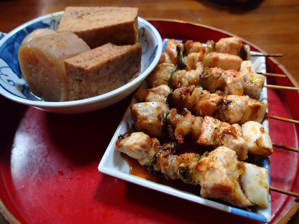 Today we decided to try a small yakitori place that we had wandered past quite a few times. It always smelt delicious. We opened the door to go in, and it was a tiny room, seating perhaps 15 at a squeeze. We joined a table with two other Australians at it. The bar seats were already filled with Aussies. In fact, everyone in three was Australian except the owners. Kind of scary. We chatted to the others at our table (Melbournians) and were soon joined by another 4 Perthies. Our table was full. We ordered some yakitori and oden. Steve was excited about finally getting to try oden. After some initial confusion, we got our order in and our food came out. It was really good. The daikon radish in the oden in particular. (Just for the record – the oden was described as “shades of brown” in the menu…hmmmm doesn’t make it sound appealing does it?)