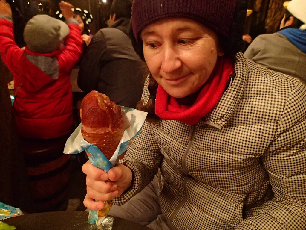 I’d been seeing people walking around eating turkey drumsticks all day, so when it came to dinner time, I couldn’t resist getting one too. We also got fried chicken.