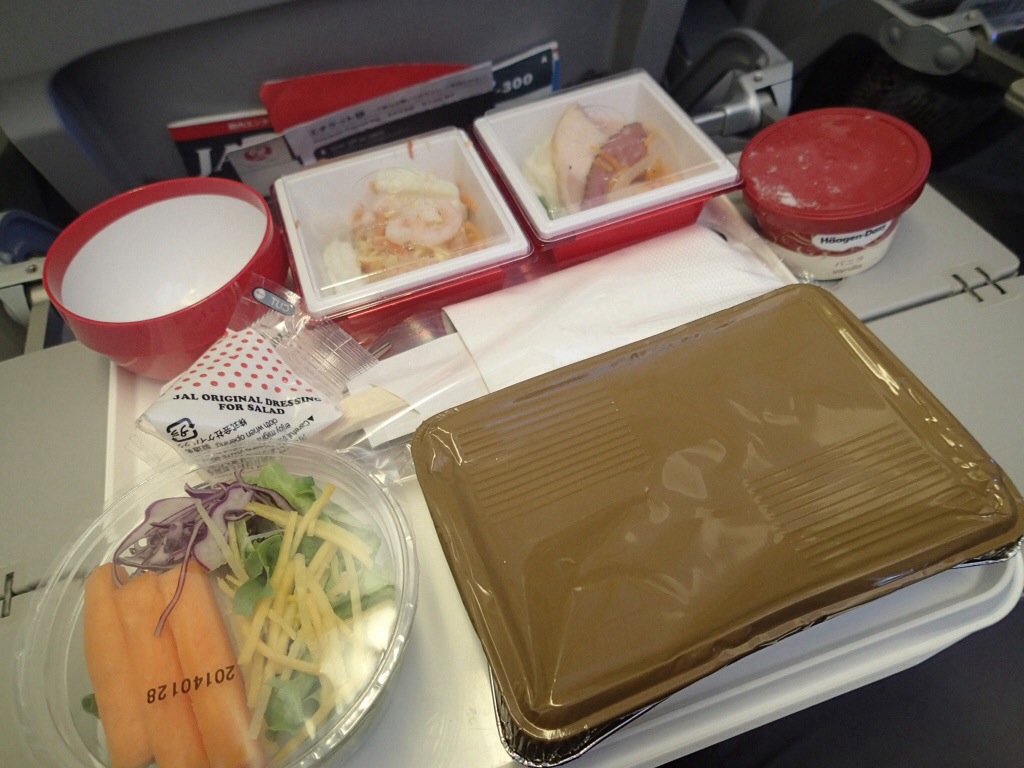 Left Tokyo this morning flying with JAL bound for Singapore. JAL are an awesome airline with spacious seats and good food. Even better was the plane was half empty so it was quite an enjoyable flight, well as enjoyable as flights can be I guess. We got rice crackers and green tea for snacks and Haagen Das Icecream for dessert.