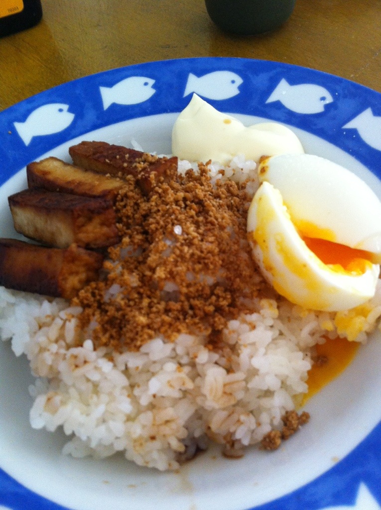Friday, we had pretty much run our of food and I was going to Derby practice again, so eggs n rice n tofu was in order.