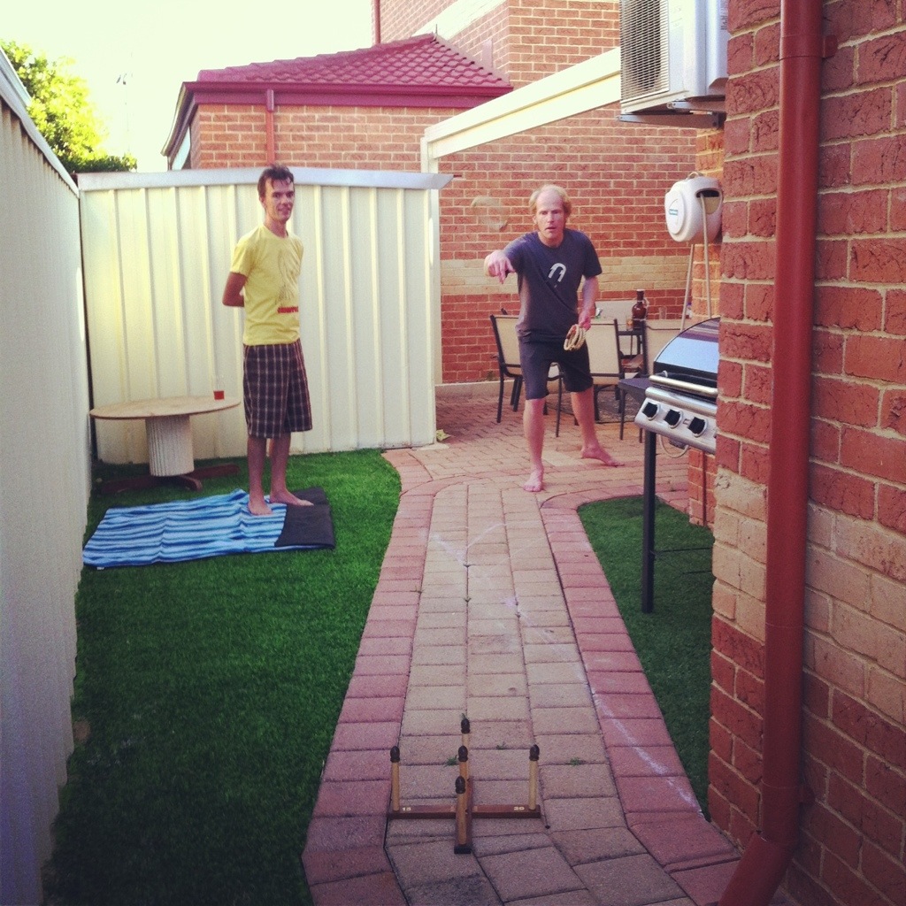 The Burgers came round today for a BBQ in celebration of Steve’s upcoming birthday. We cooked up a whole load of stuff on the BBQ. Added some salads. And some beers. Talked a load of rubbish and played quoits. Good times.