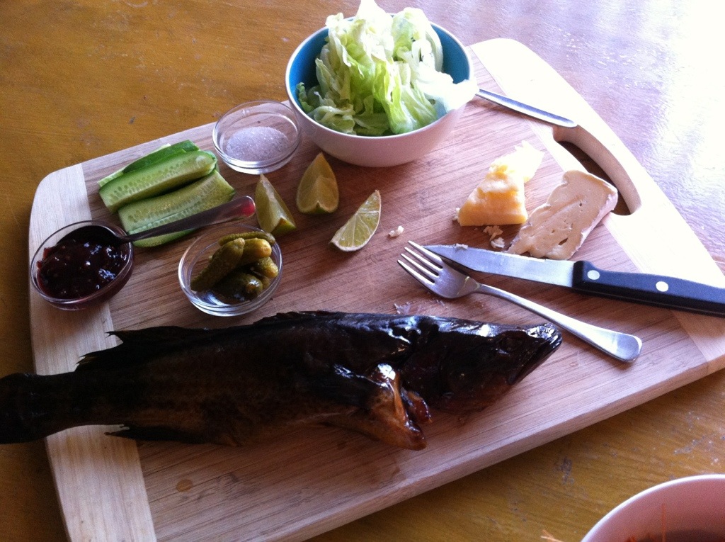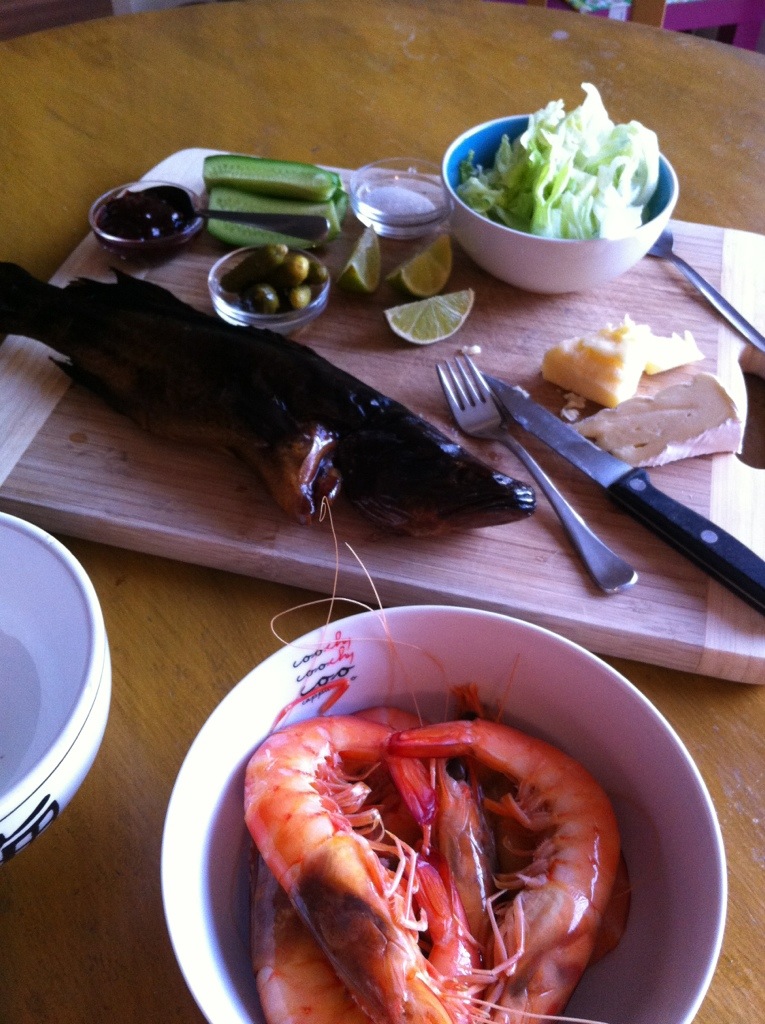 Smoked cod. Some prawns. And some cheese n stuff. Perfect hot summers night dinner.