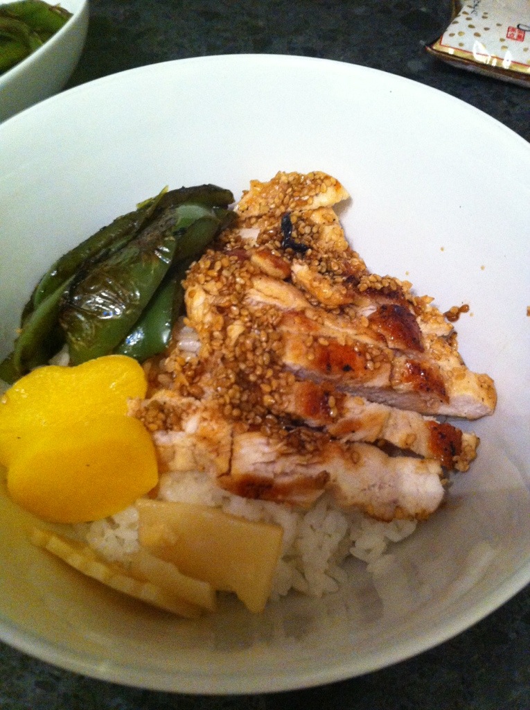 Tonight I made Sesame chicken donburi for dinner. Plus Kyoto pickles.