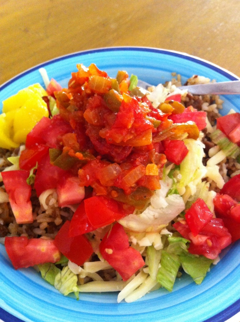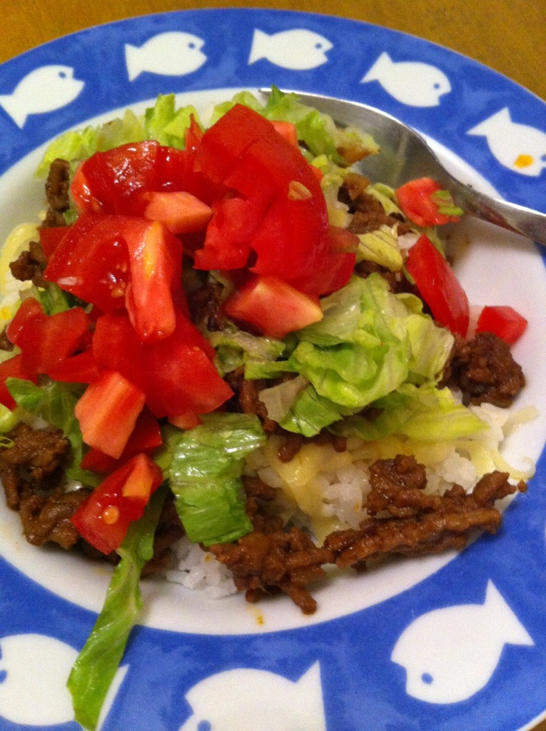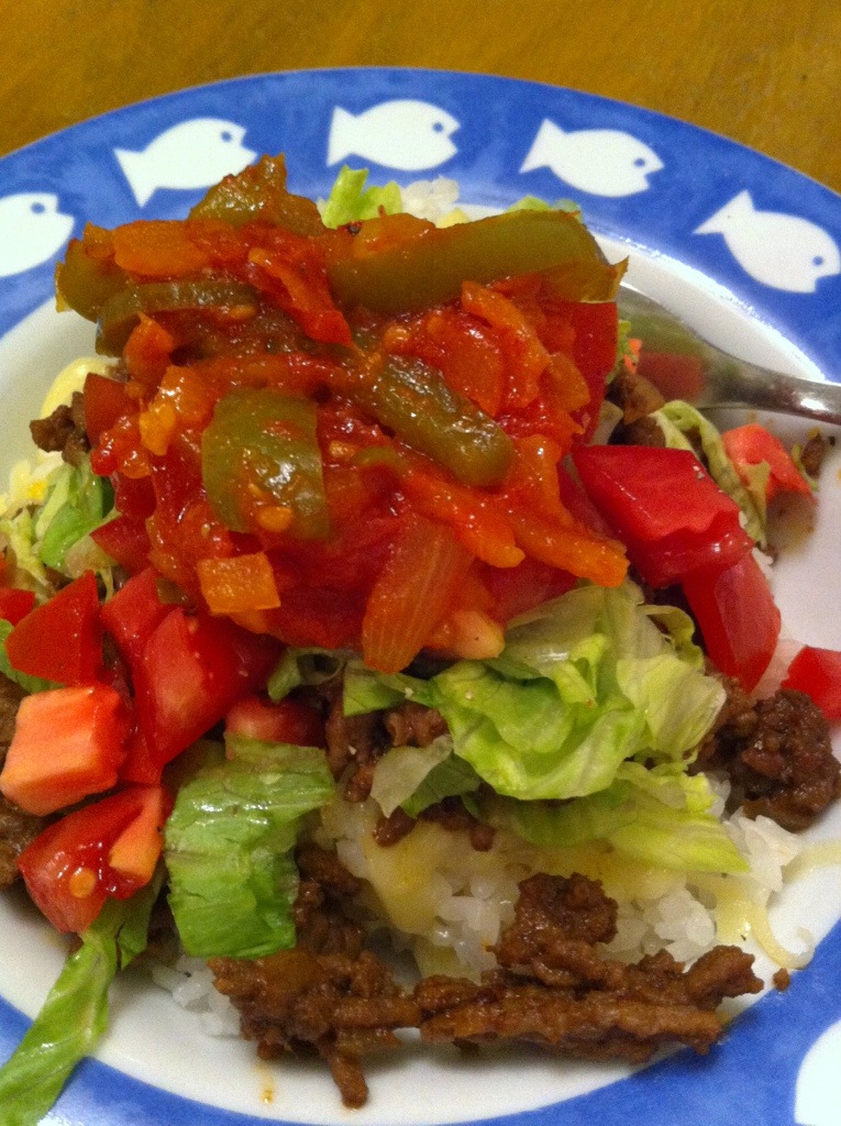 Thursday: apparently I only made Japanese food this week. Taco rice today. With salsa.The best.