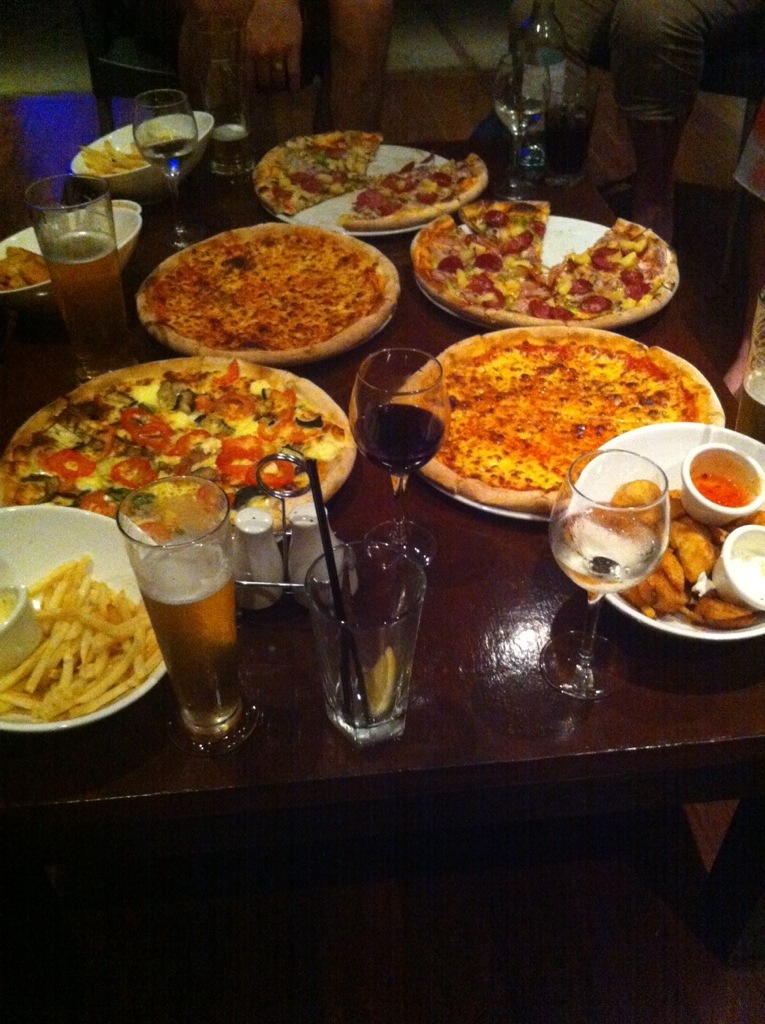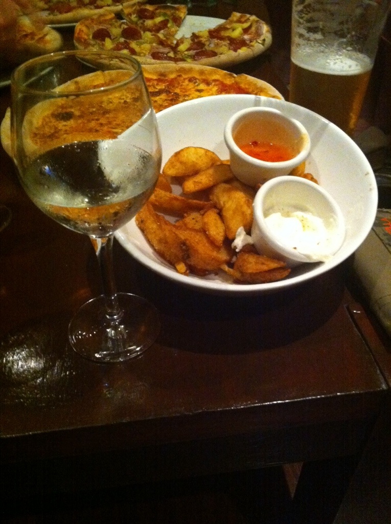Met some friends at the pub for a few bevvies. Ended up having pizza and chips there for dinner.
