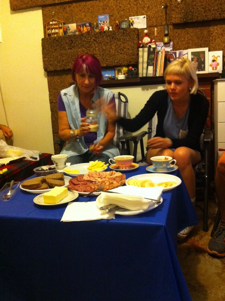 We all went around to my mums house in the afternoon. We had some bread and salami and stuff.