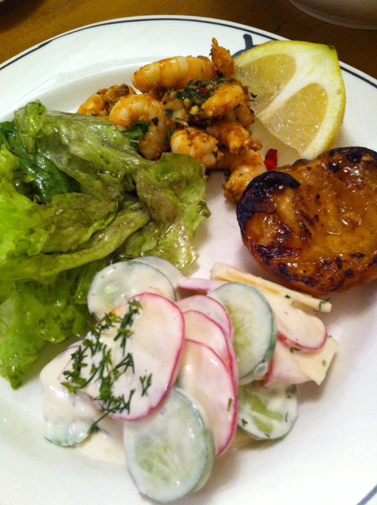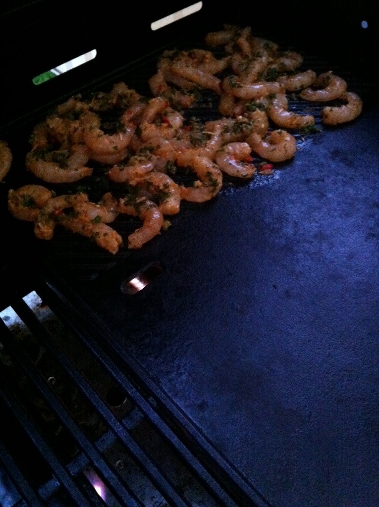 Easter Monday we cooked up some prawns on the BBQ. I had had grand plans of cooking up a big BBQ over the weekend for the rellies, but alas it wasn’t to be. So we enjoyed the prawns ourselves.