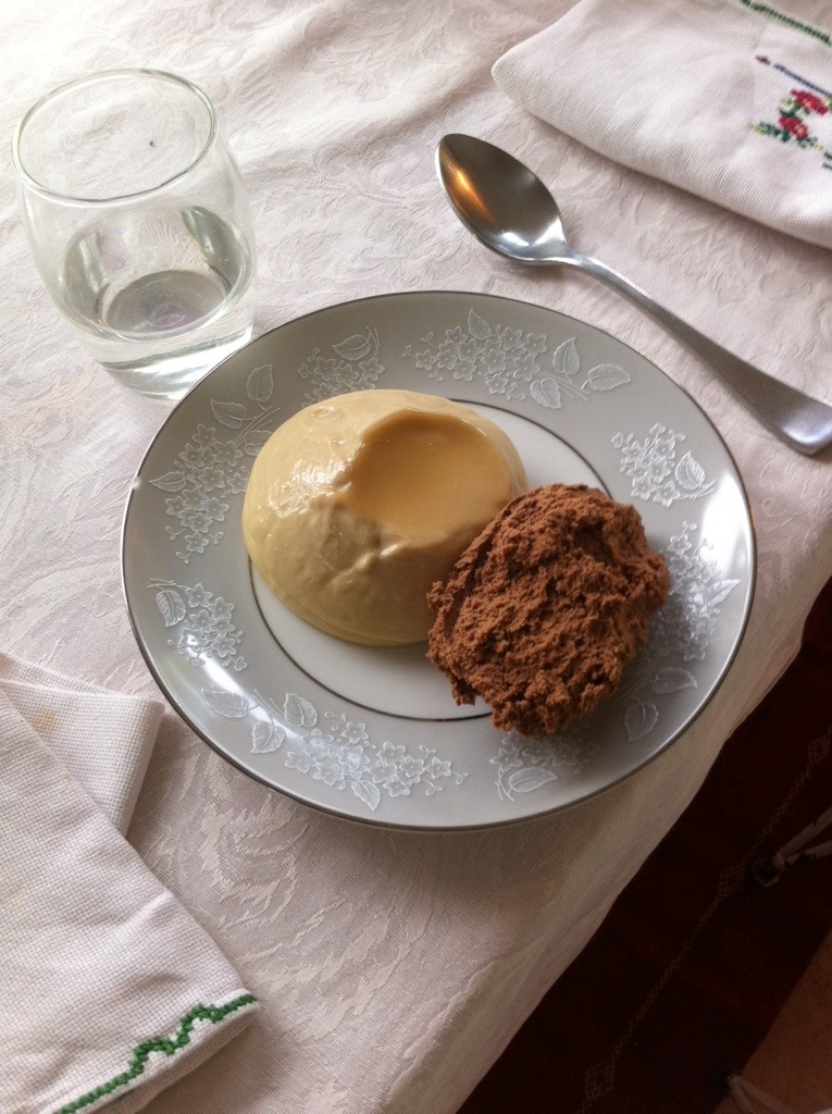 Lunch was amazingly delicious And featured rabbit (something I haven’t had for years) and an equally delicious dessert of homemade pannacotta and chocolate mousse. Yum!