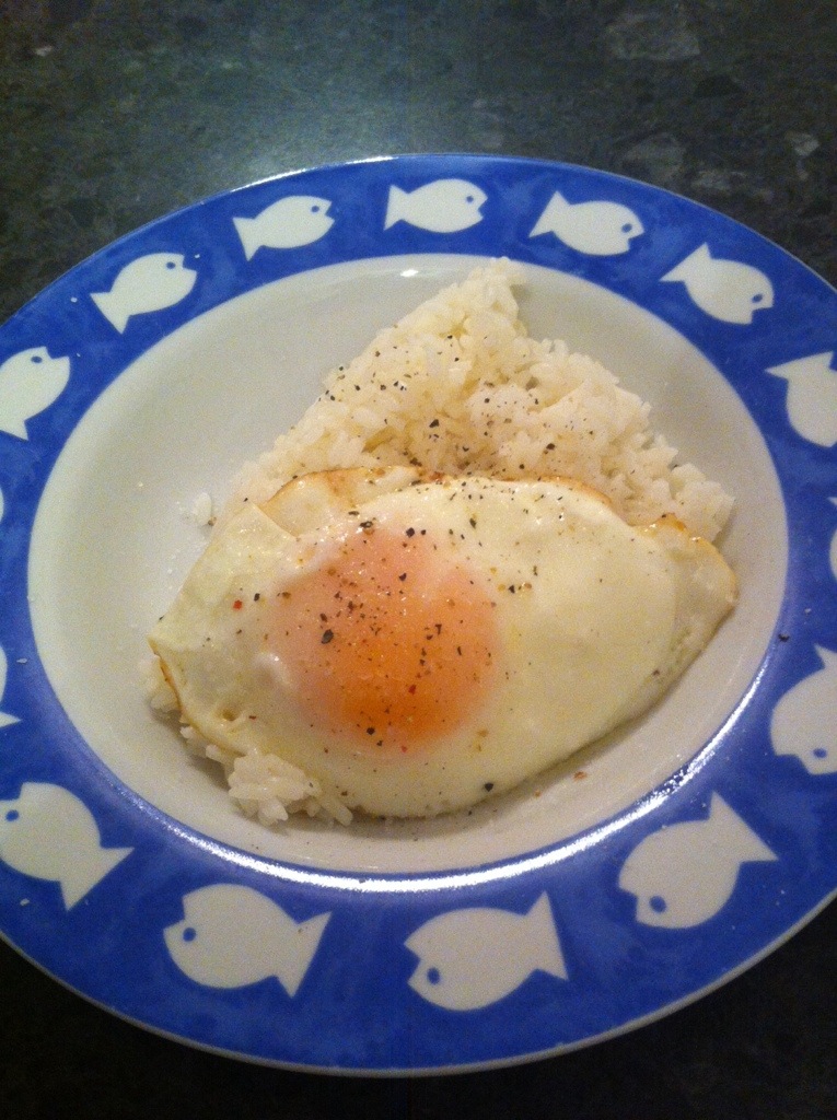 Boring dinner of egg & rice today.