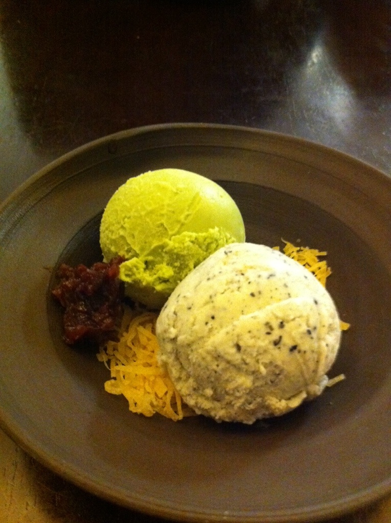 We were quite full and we weren’t going to get dessert, but then got talked into it. When were told Matcha and Sesame ice cream were on offer we couldn’t resist.