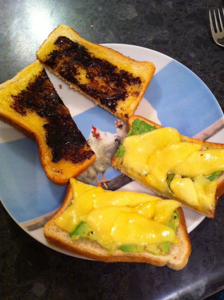 Foods not really been working for me recently. I’ve been getting stomach aches a lot of the last few days. Really annoying. Can’t really pinpoint what’s causing it though. So I’m on a Vegemite toast regime at the moment. Nice and basic. Although I wanted something a bit more substantial for dinner so I risked a cheese and avocado toastie too.
