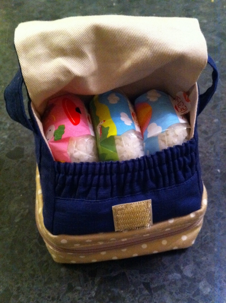 Onigiri. Some with chicken, some with tuna & mayonnaise. And pickles.