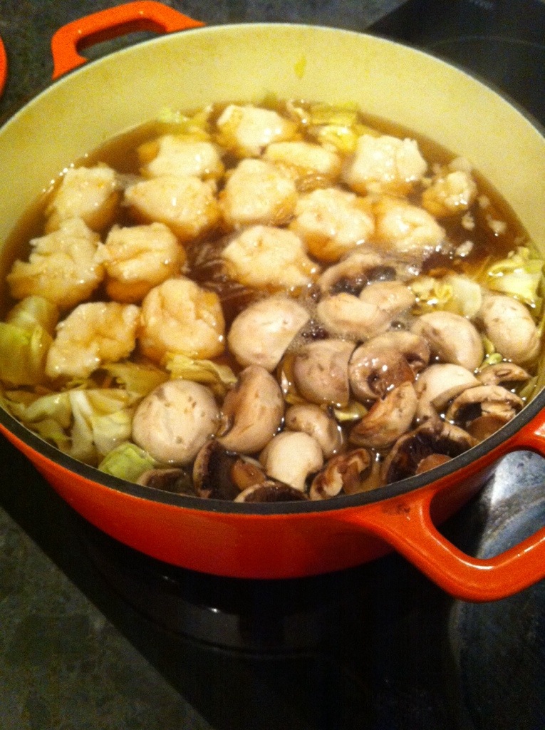 Made another hot pot. This time of the prawn dumpling variety. Oishii desu yo!