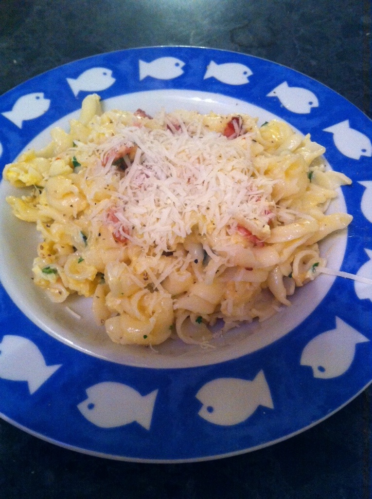With the Burgers of Beefs Cd launch swiftly approaching, we are getting in as many rehearsals as we can, including tonight. So a quick meal of pasta carbonara was in order.