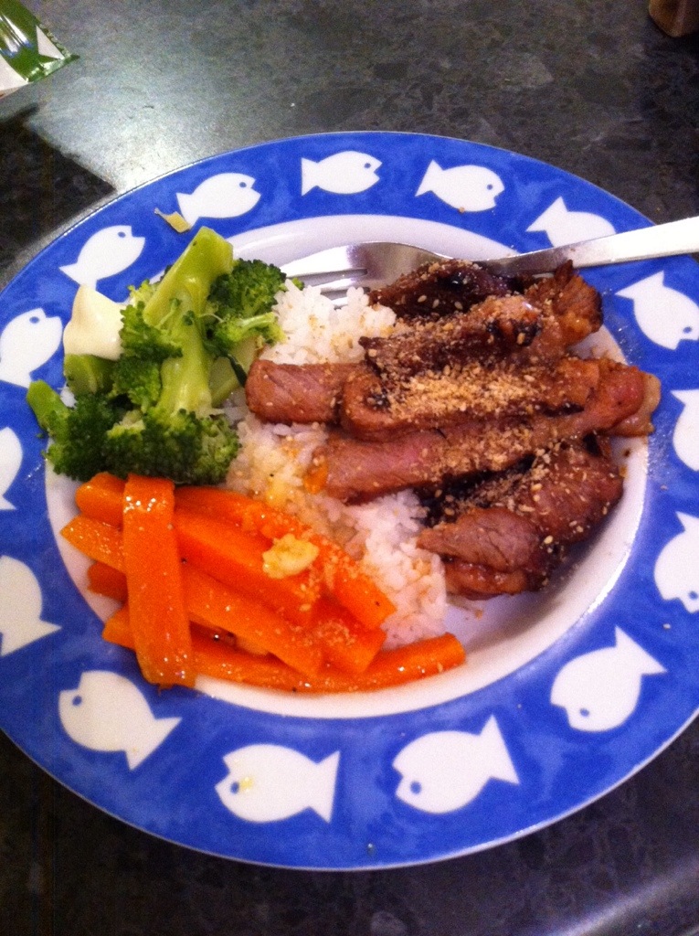 Dinner was Japanese style steak with veges on rice. It was rather tasty.