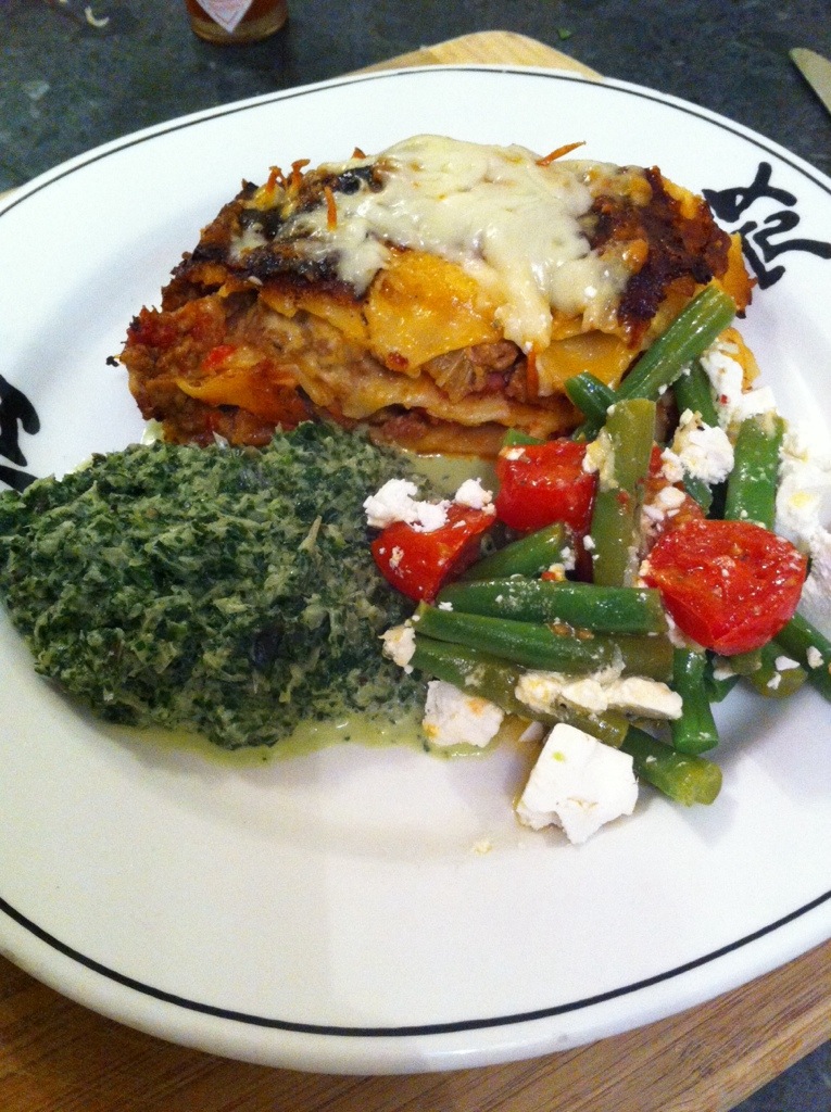 With bean salad and creamed silverbeet.