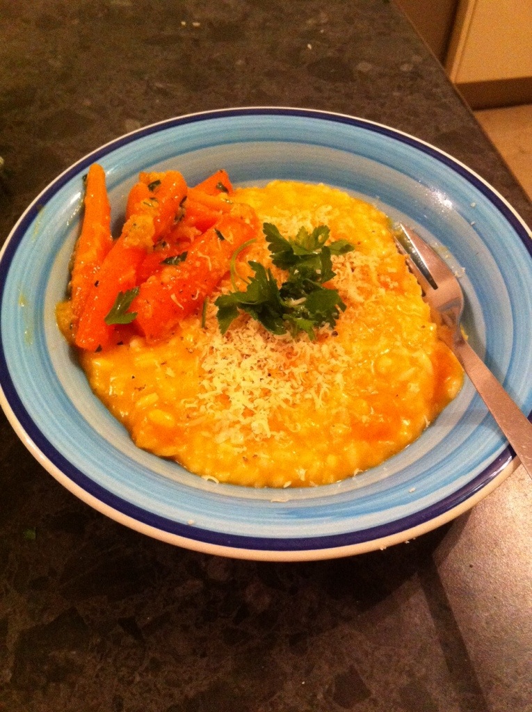 Pumpkin risotto & garlic honey carrots (aka the orange meal)