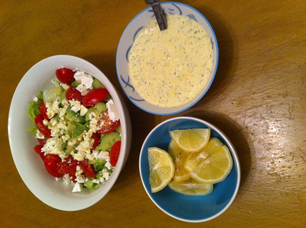 Fish and chips (homemade). This meal made me angry. Whilst the chips I made were fantastic (best I’ve ever made) the fish that we bought that day from the fish shop was not fresh at all and pretty much inedible due to a strong ammonia taste. Yuck. So whilst it looks good in the picture it did not infact taste good and most of the fish ended up in the bin. Not happy Seafresh Innaloo 😦
