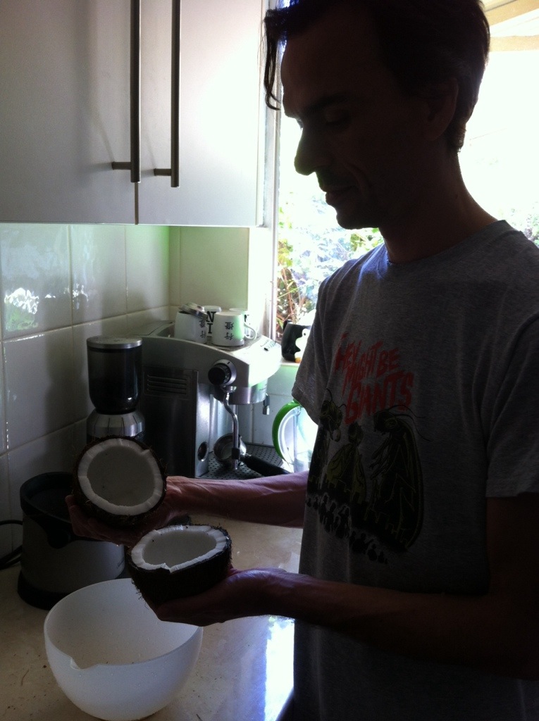 Made a coconut fish curry for dinner tonight. This involved cracking in to a whole coconut.