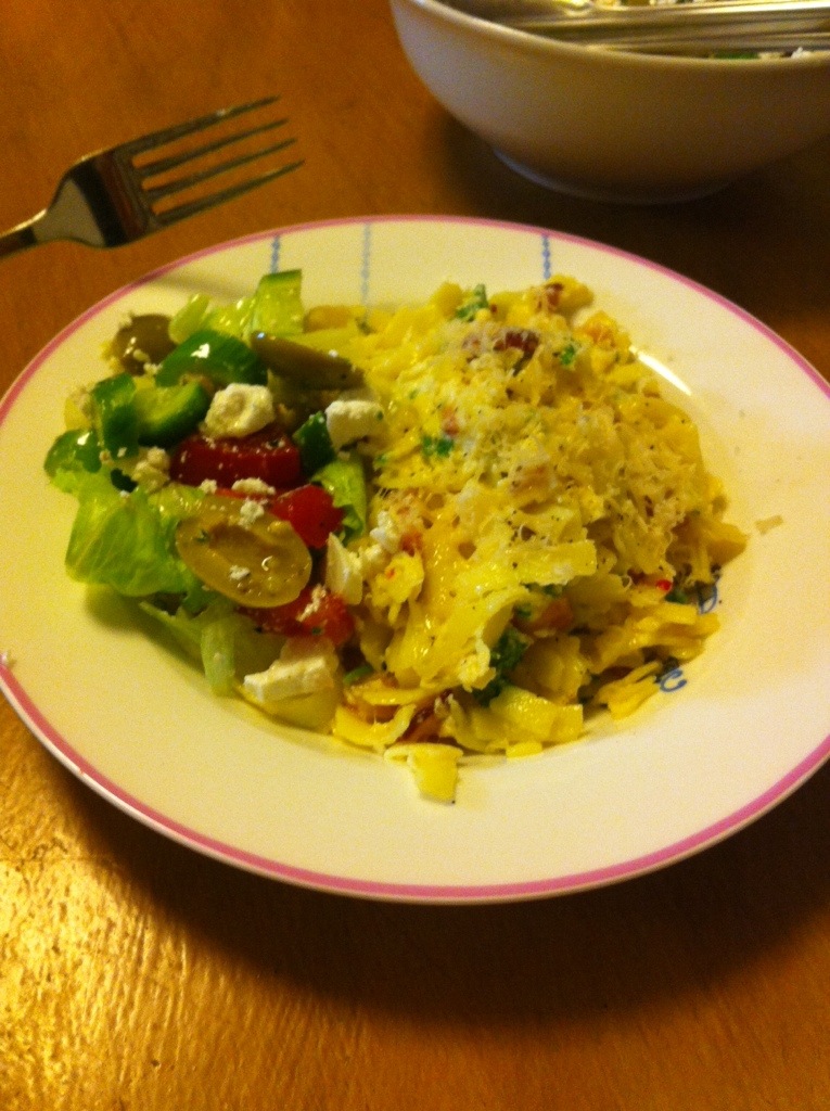 Pasta (carbonara I think)