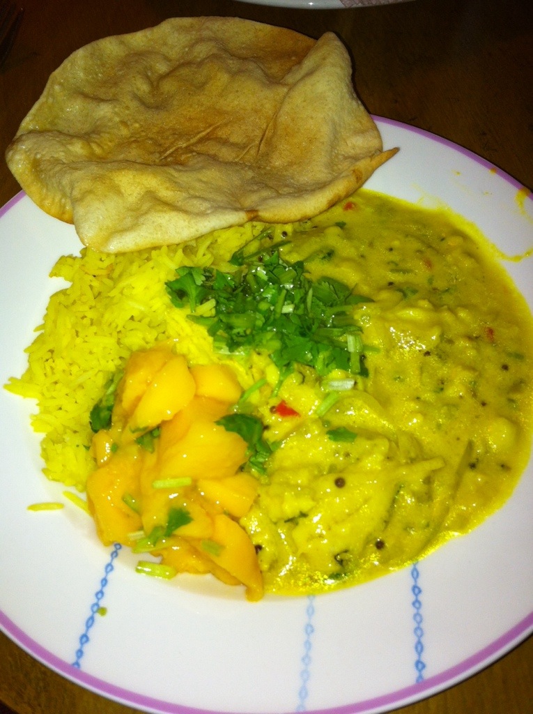 I made a Southern Indian crab curry today. It was a Jamie Oliver recipe. Made tumeric rice with it and a mango salsa. Everything turned out kind of yellow.