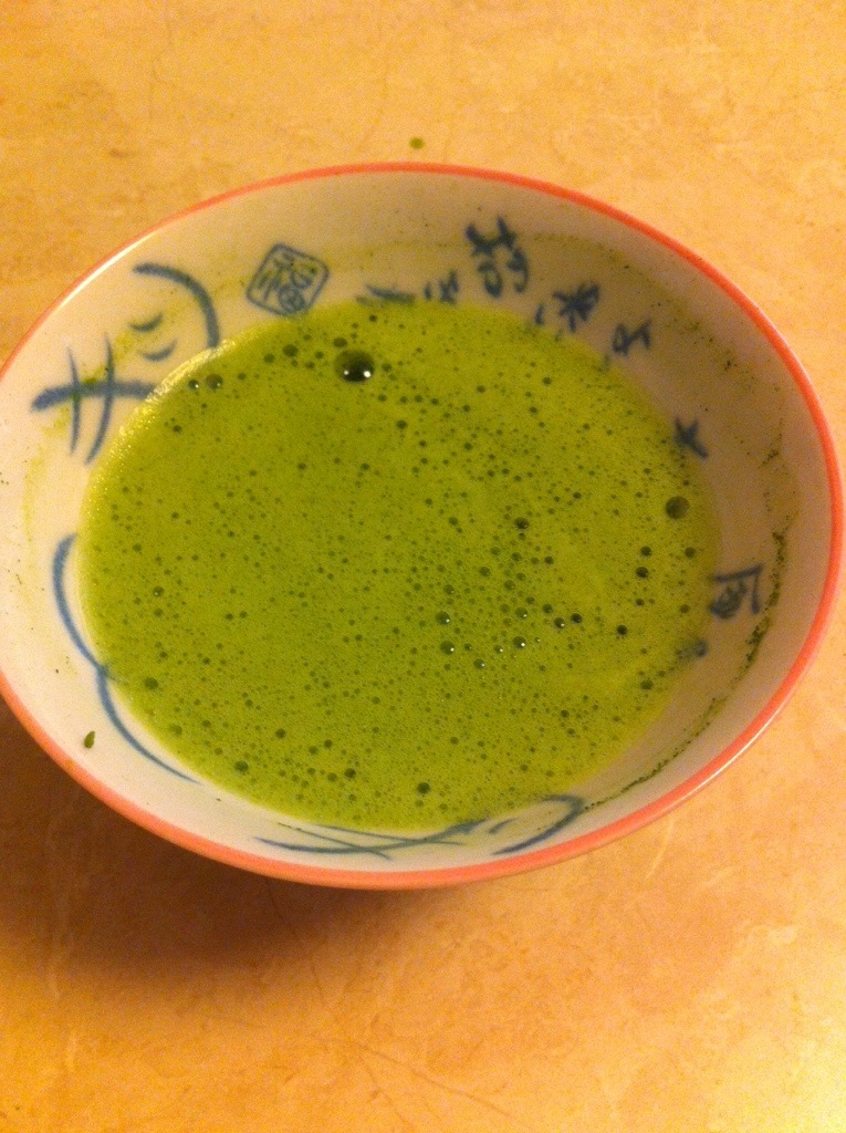 Then the whisking. I found it a bit tricky to make the matcha all frothy like its meant to be. But I got a bit of froth.