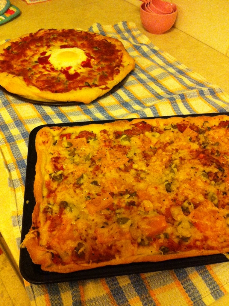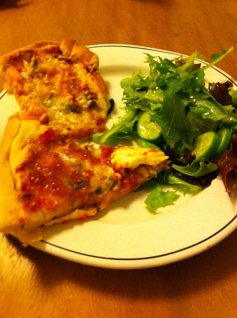 And made pizza for dinner. I didn’t have a lot in the fridge to top the pizza with, but they turned out tasty.