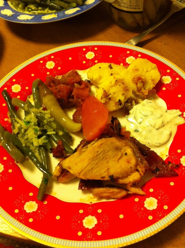 And it’s almost a Monday night tradition (two weeks running) to have leftover Schweinsbraten. With added Viennese green beans.