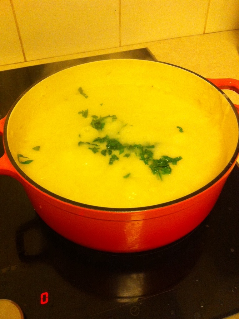 It’s so cold at the moment. And cold weather calls for soup. I made cauliflower soup.