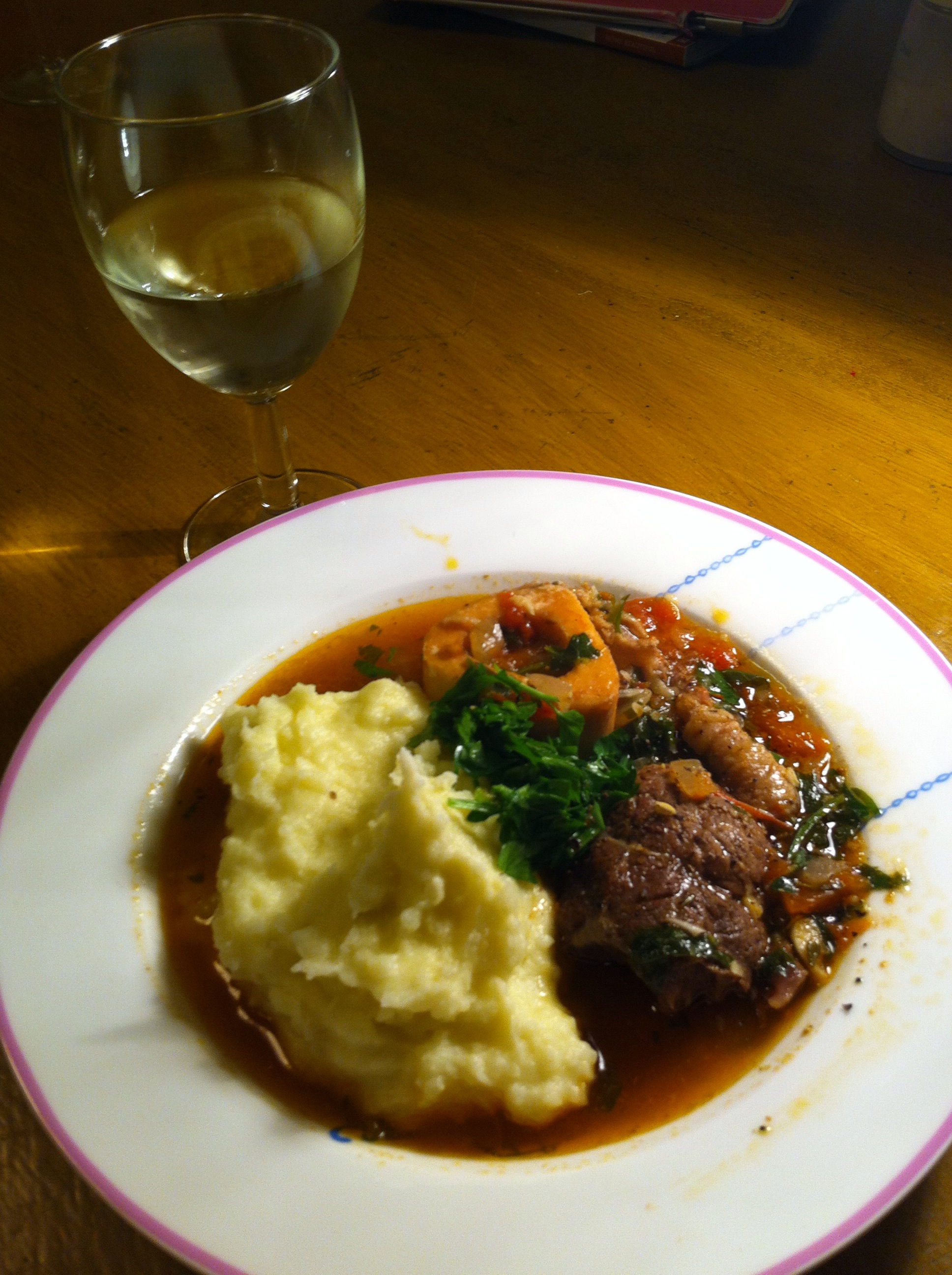 I put dinner on to cook at about 3pm – slow cooked Osso Bucco. But I cooked it in my fave cast iron pot and not the slow cooker. I’m officially done with the slow cooker. No more flavourless watery meals for me!