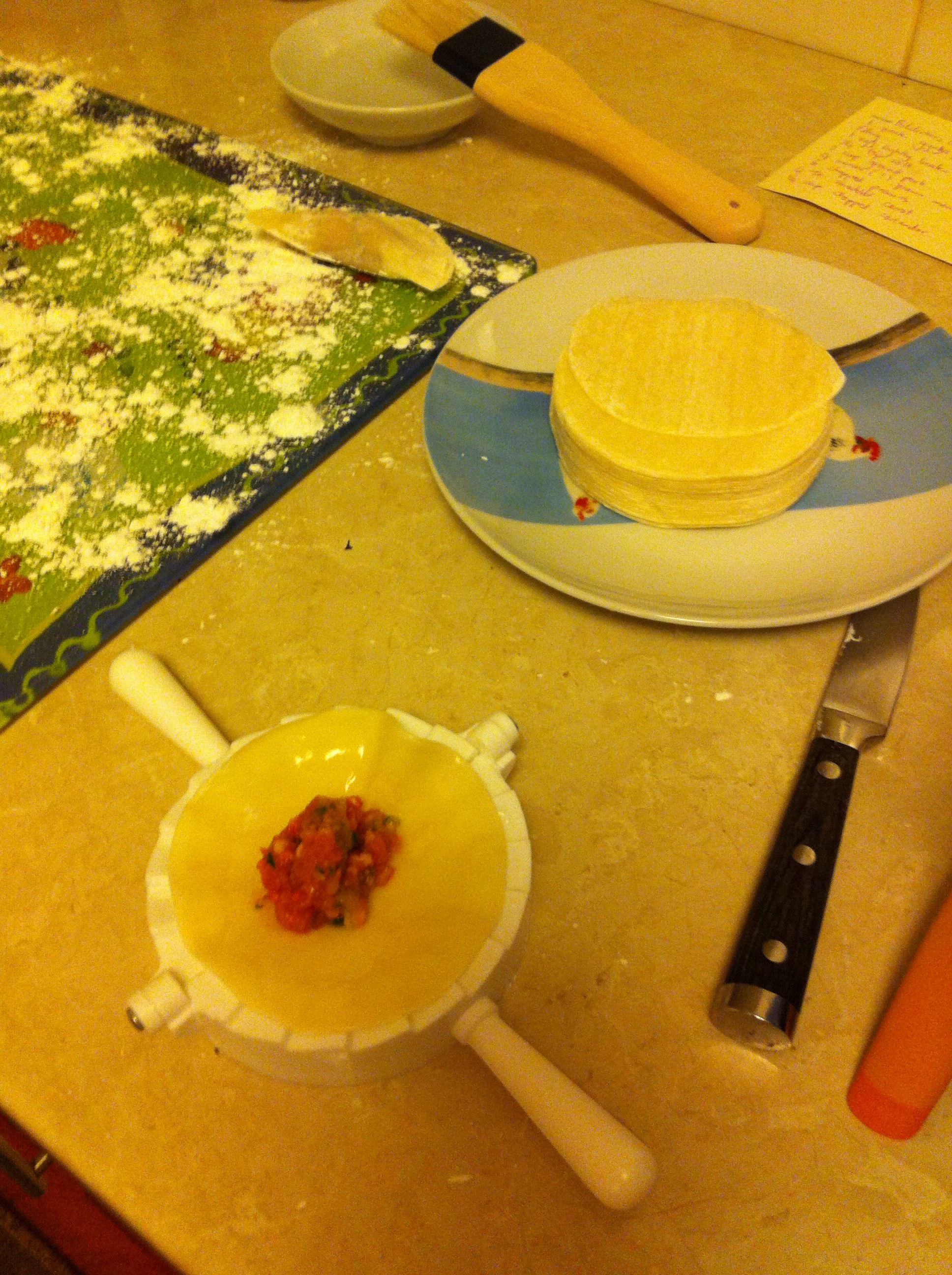 So I’ve not been very well today. Some sort of stomach bug. Not good. Unfortunately before I knew I was sick I had got all the gyoza making ingredients down from the freezer, and now they had to be used otherwise they would end up in the bin. And so I summoned the strength to make prawn & pork gyoza.