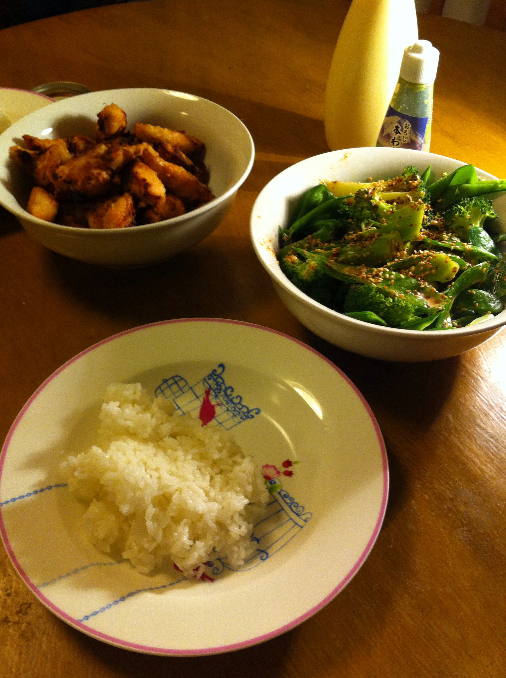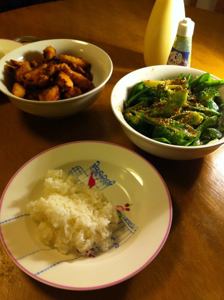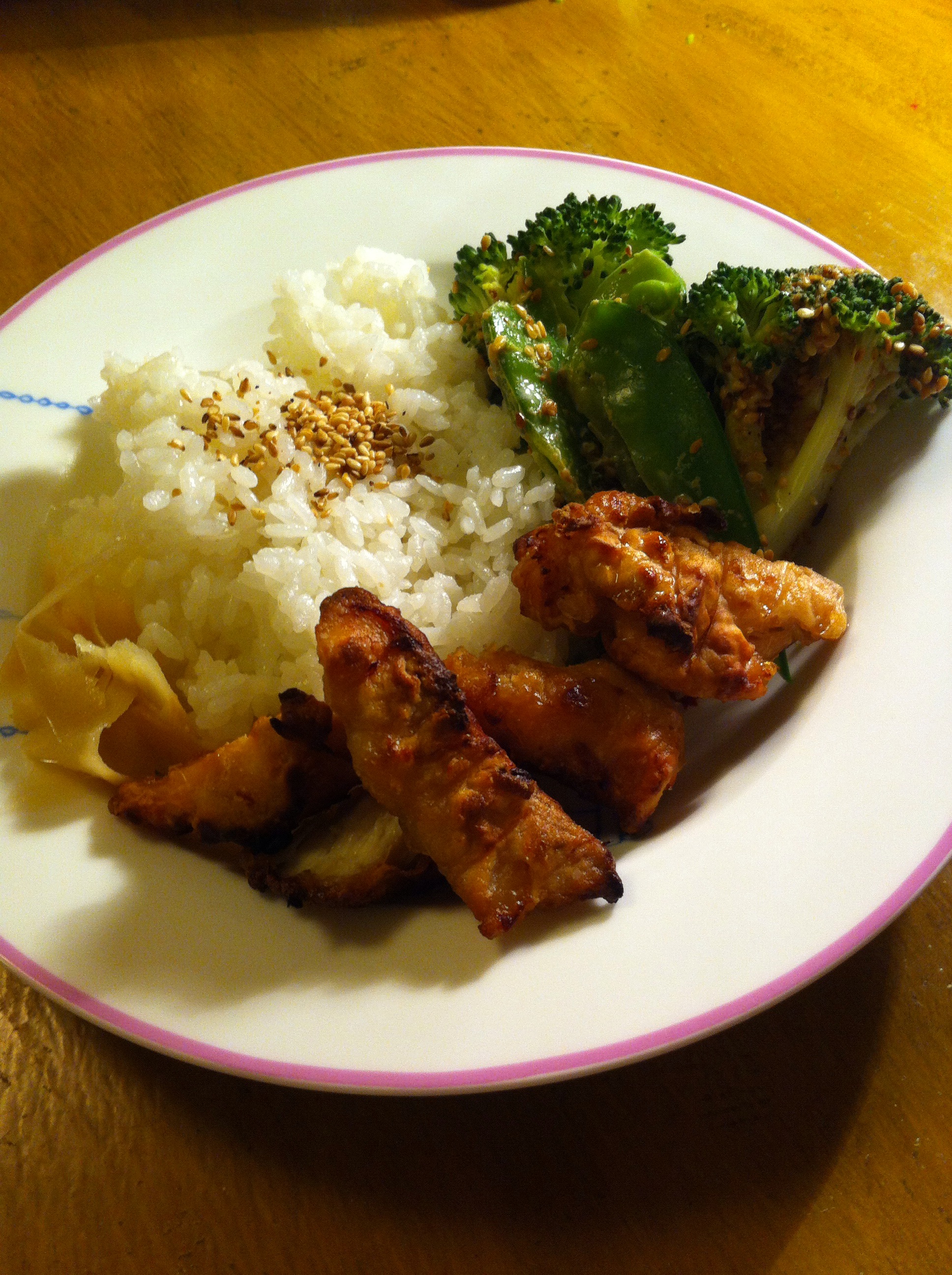 I made chicken karaage tonight. But wanting a slightly less greasy version, I grilled them rather fried them. They turned out tasty, but not quite the same as karaage!