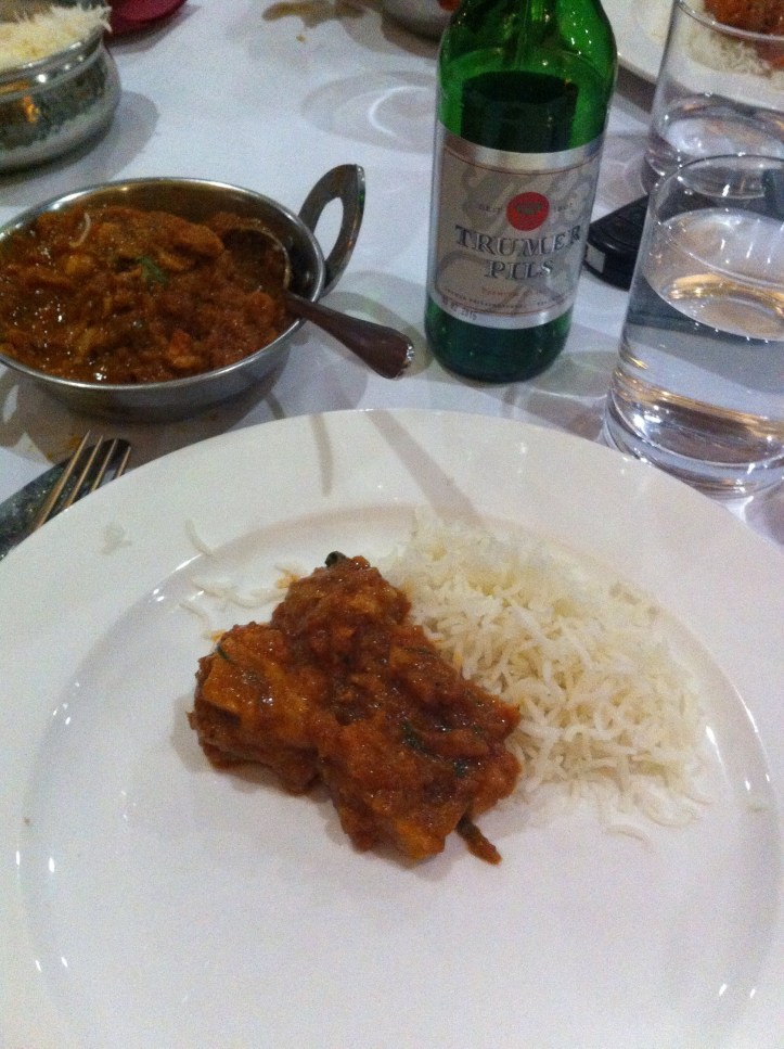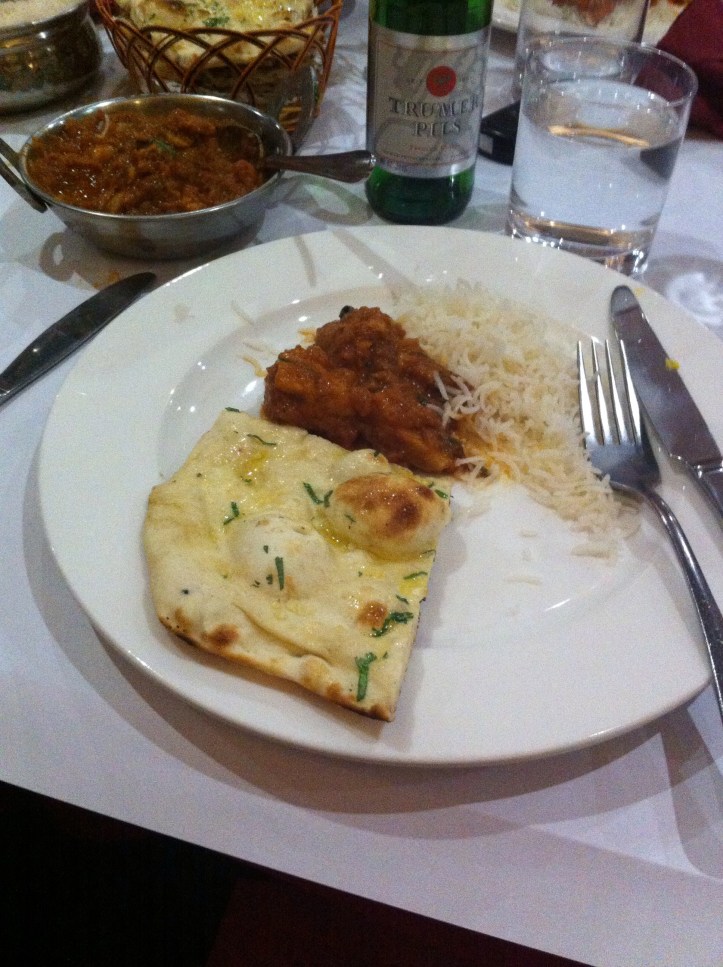 I had Chicken Rogan Josh (and tried a bit of the Butter Chicken from a friend). It was delicious. I also had some tasty garlic naan. And one vege Momo and one meat Momo – they were dumplings. Really yummy. I was really happy with the food, restaurant, service and everything really. Will definatly return!
