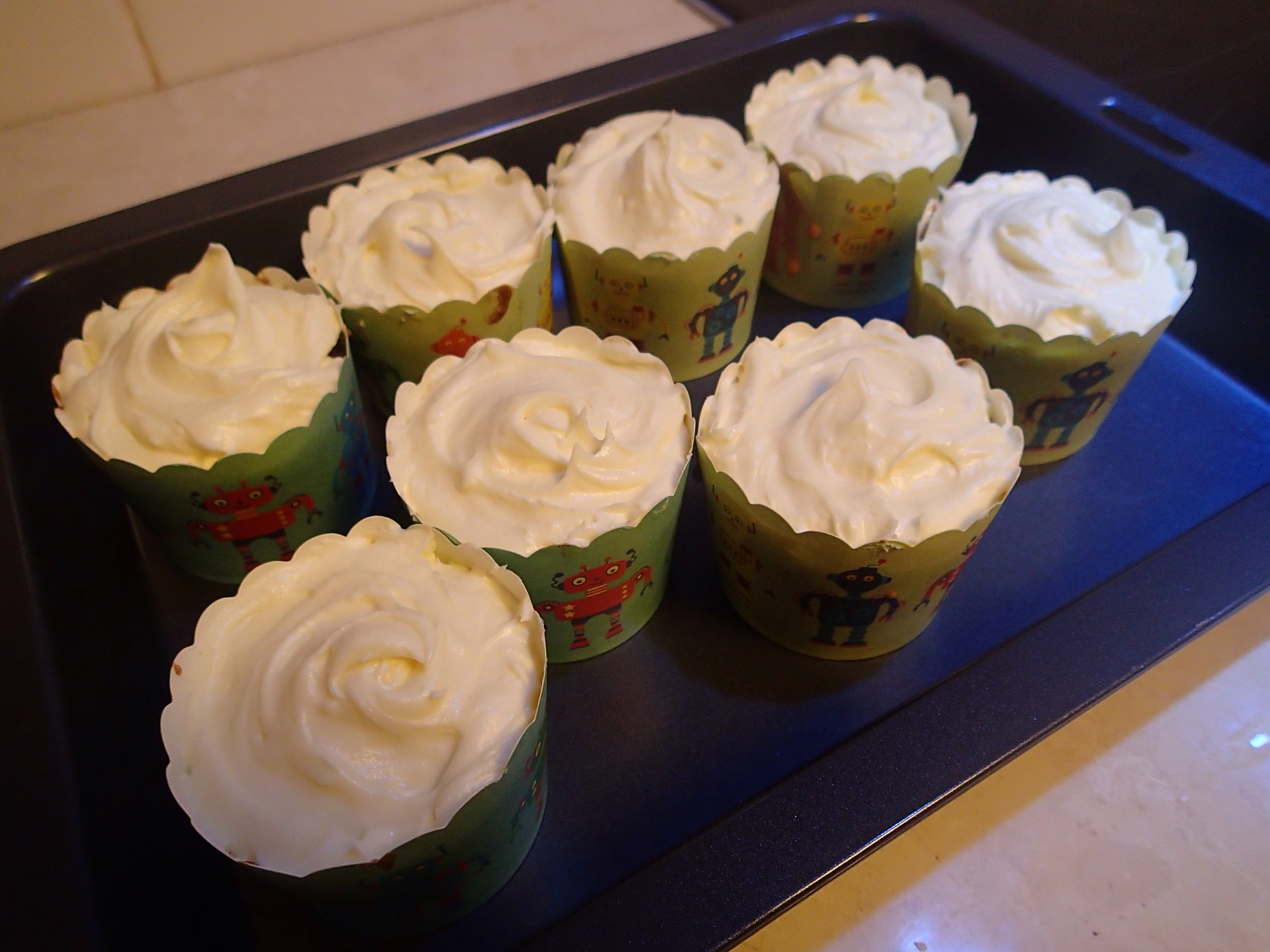 And, just in case we hadn’t had enough carbs (or wheat) today, I made carrot cupcakes with cream cheese frosting for dessert. I love carrot cupcakes.