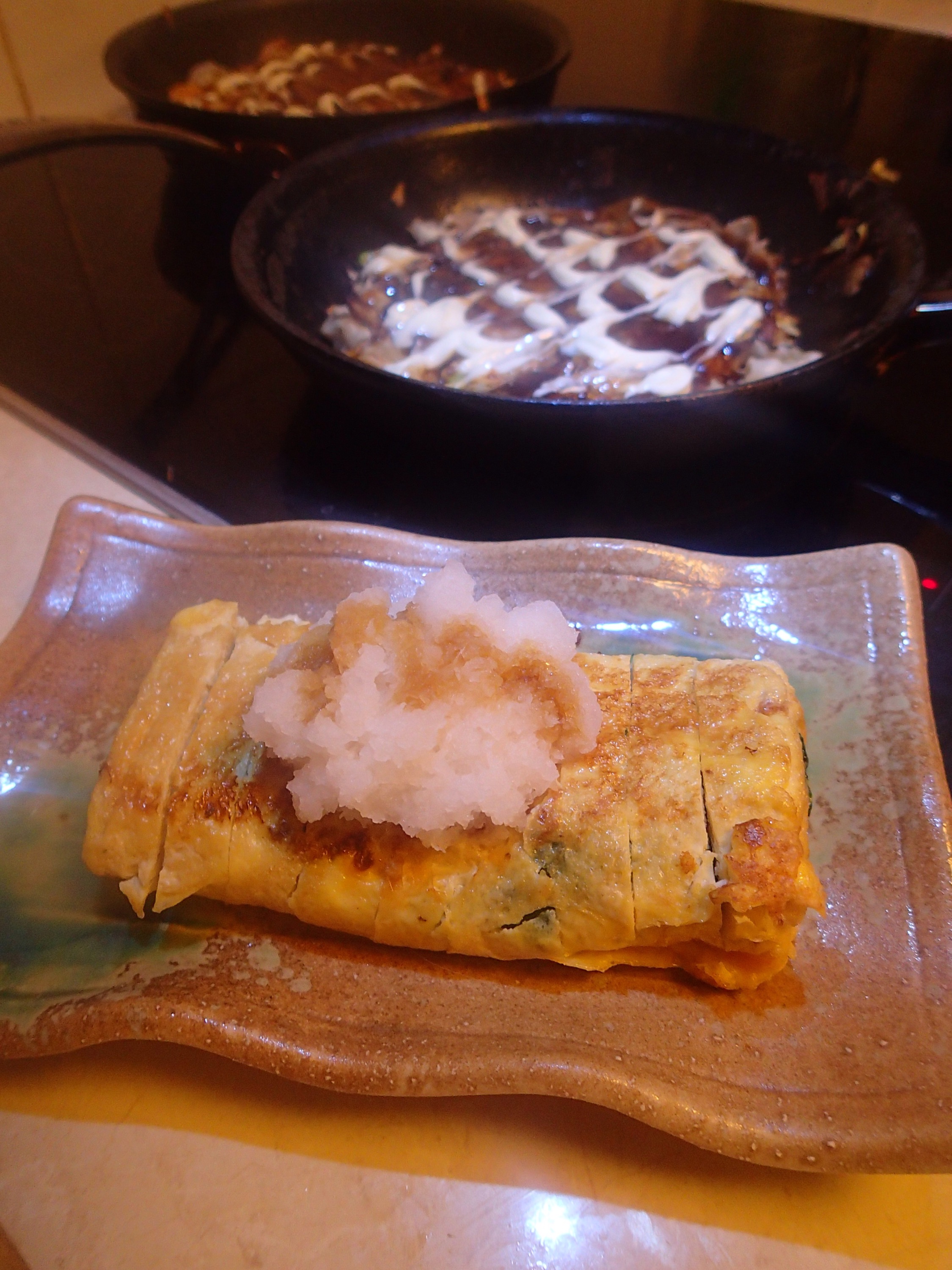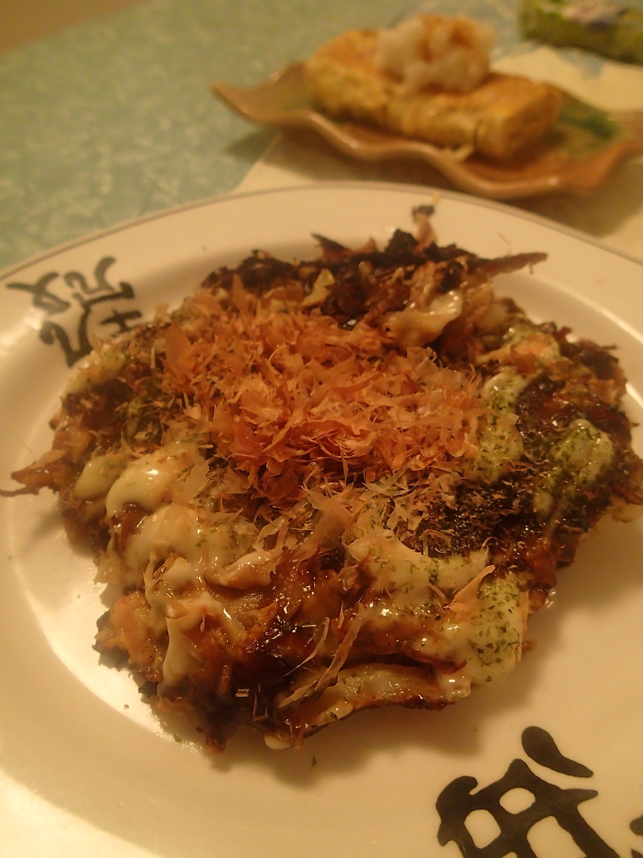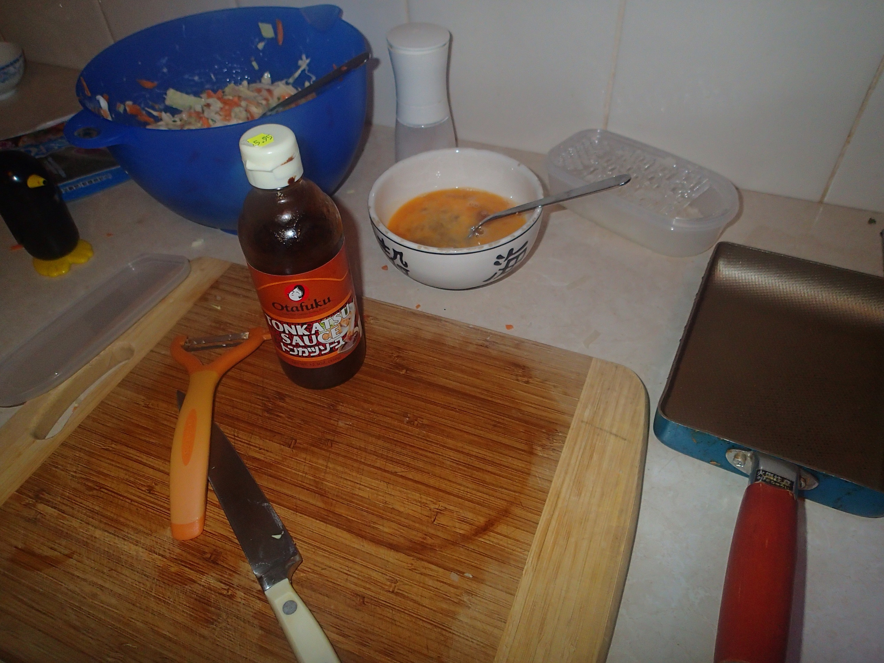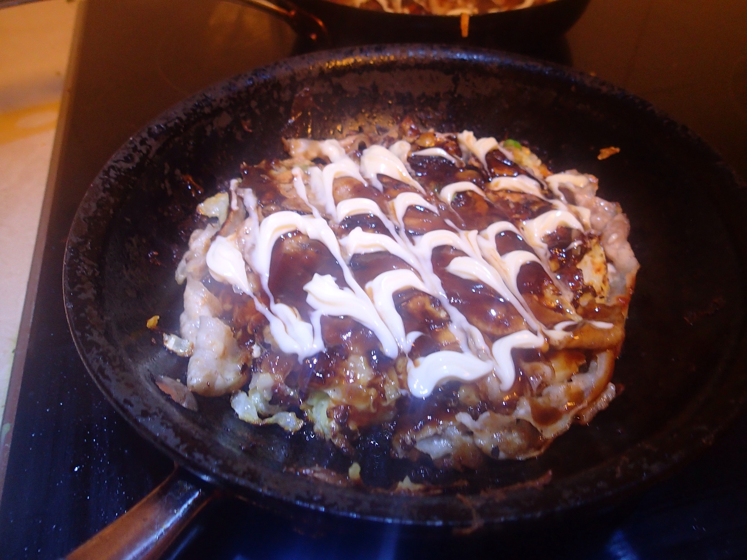 Then I made okonomiyaki for dinner. The batter stuck to the pans a bit and I was a bit concerned that they weren’t going to work – but they were good in the end.