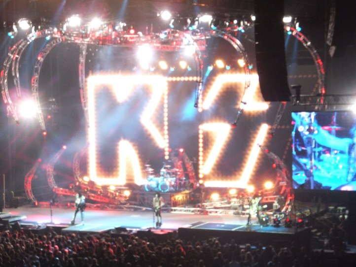 I’m starting to feel a little better…slowly. Still coughing though. Steve is still quite sick though. However, sick or not, tonight we were going to see Kiss. When I was in preschool (5 years old) I was obsessed with Kiss. I had Kiss t-shirts, records, collected the Kiss cards, etc etc in fact Gene Simmons is probably at least partially responsible for me deciding to take up playing bass. My obsession faded over the years, and I must admit I can’t remember when I last actively listened to Kiss. But, after missing them on every other tour they have done of Oz, I figured I really should see them live, and it was now or never.
