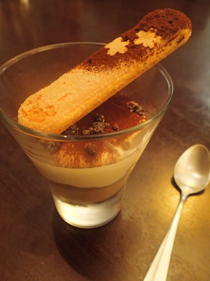 We had a couple of other dishes (which I failed to photograph) including my favourite Scallop Namban. And we couldn’t resist dessert – all four of us had the Black Sesame Tiramisu. And yes, it was delicious.