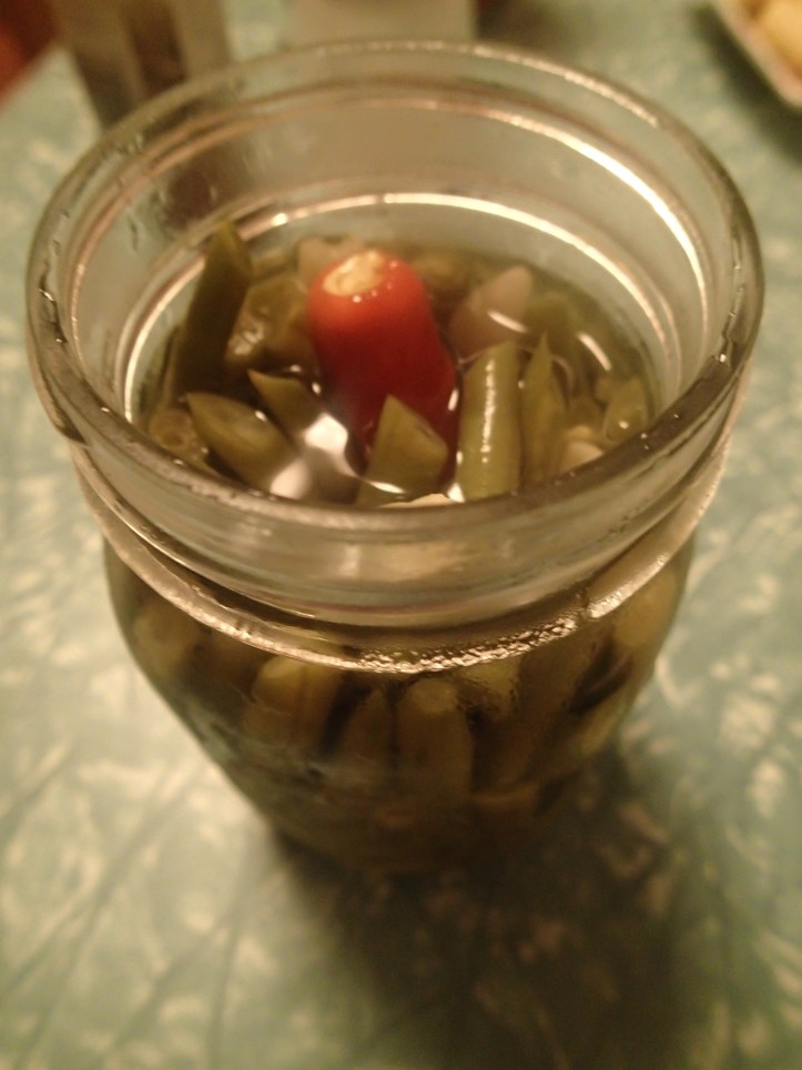 Oh and we had these beans that I’d pickled a few weeks ago. They were delicious. We had them with a tuna pasta bake.