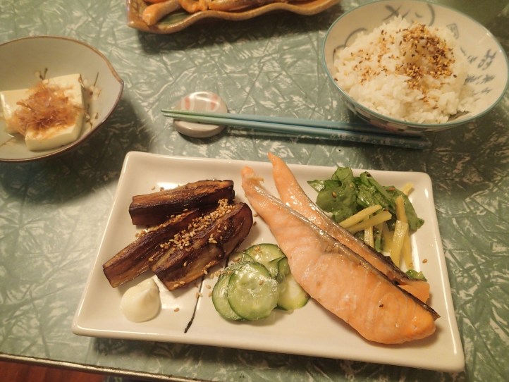 Before TMBG we had salted grilled salmon with eggplant for dinner. So oishii!