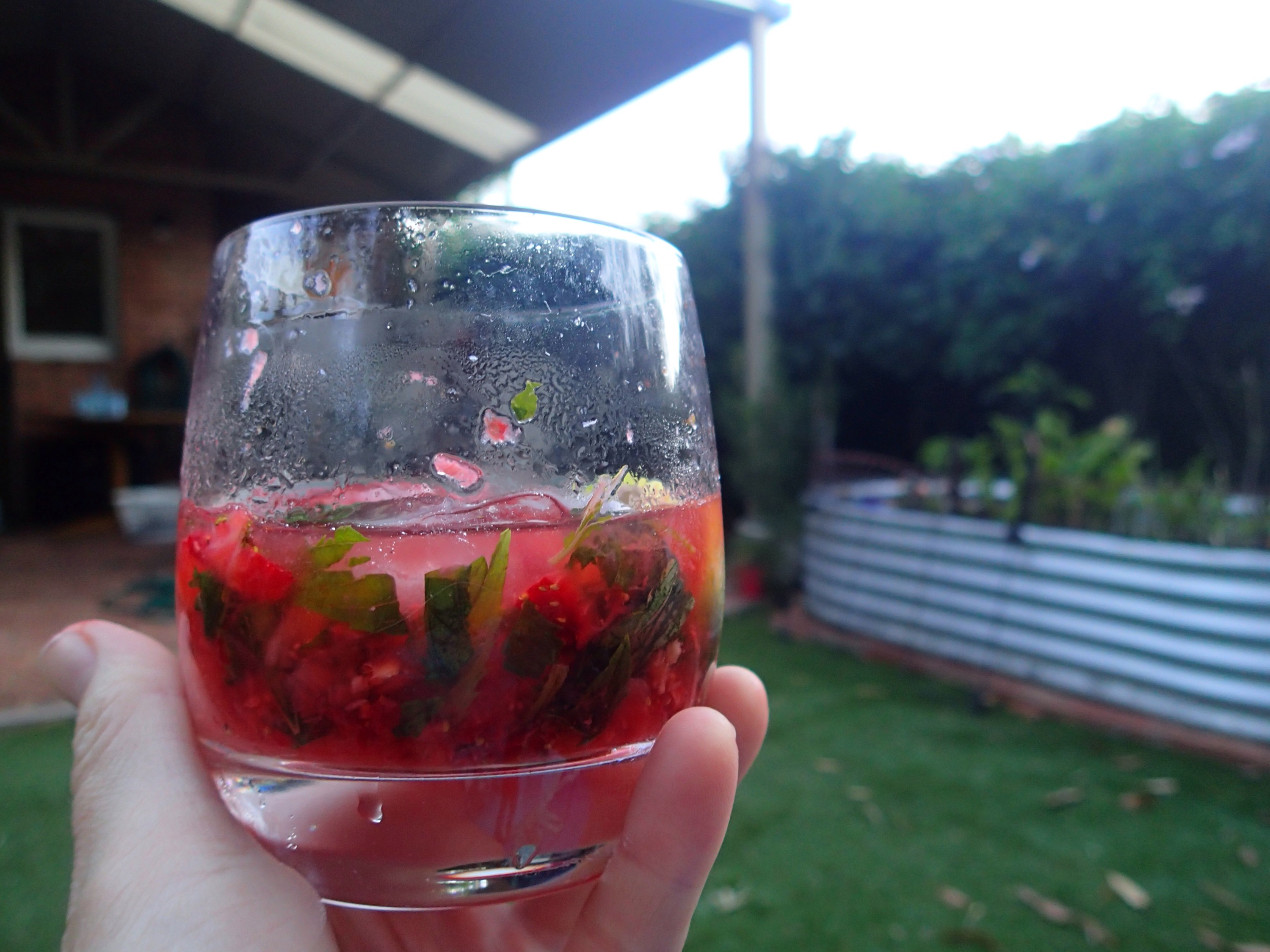 Later in the evening as the sun began to set we enjoyed Strawberry Ginger Caipirosca Cocktails in the backyard. We briefly toyed with the idea of heading up to the Beaufort Street Festival, but then decided that standing around in a massive crowd of people didn’t sound like a lot of fun.