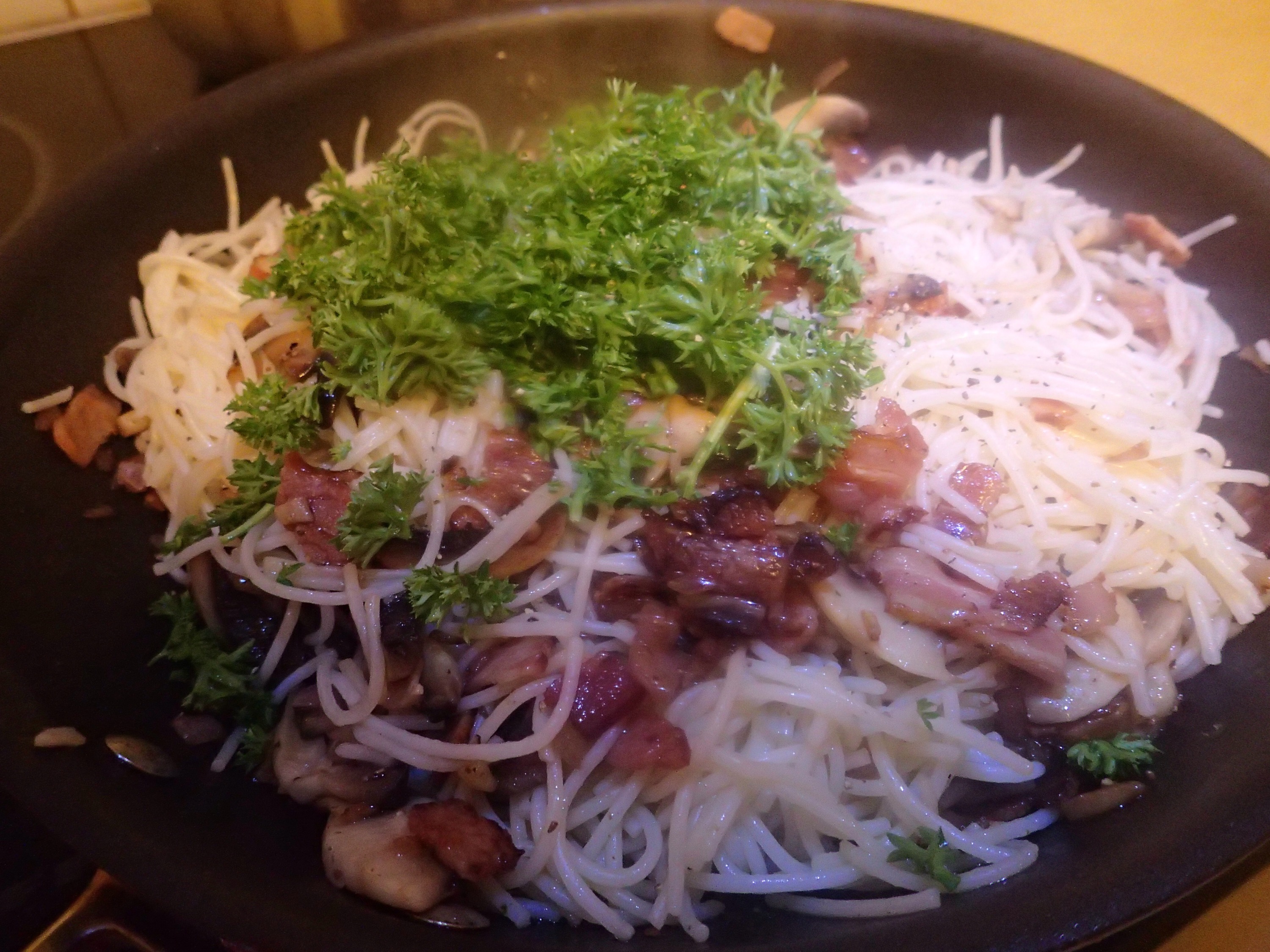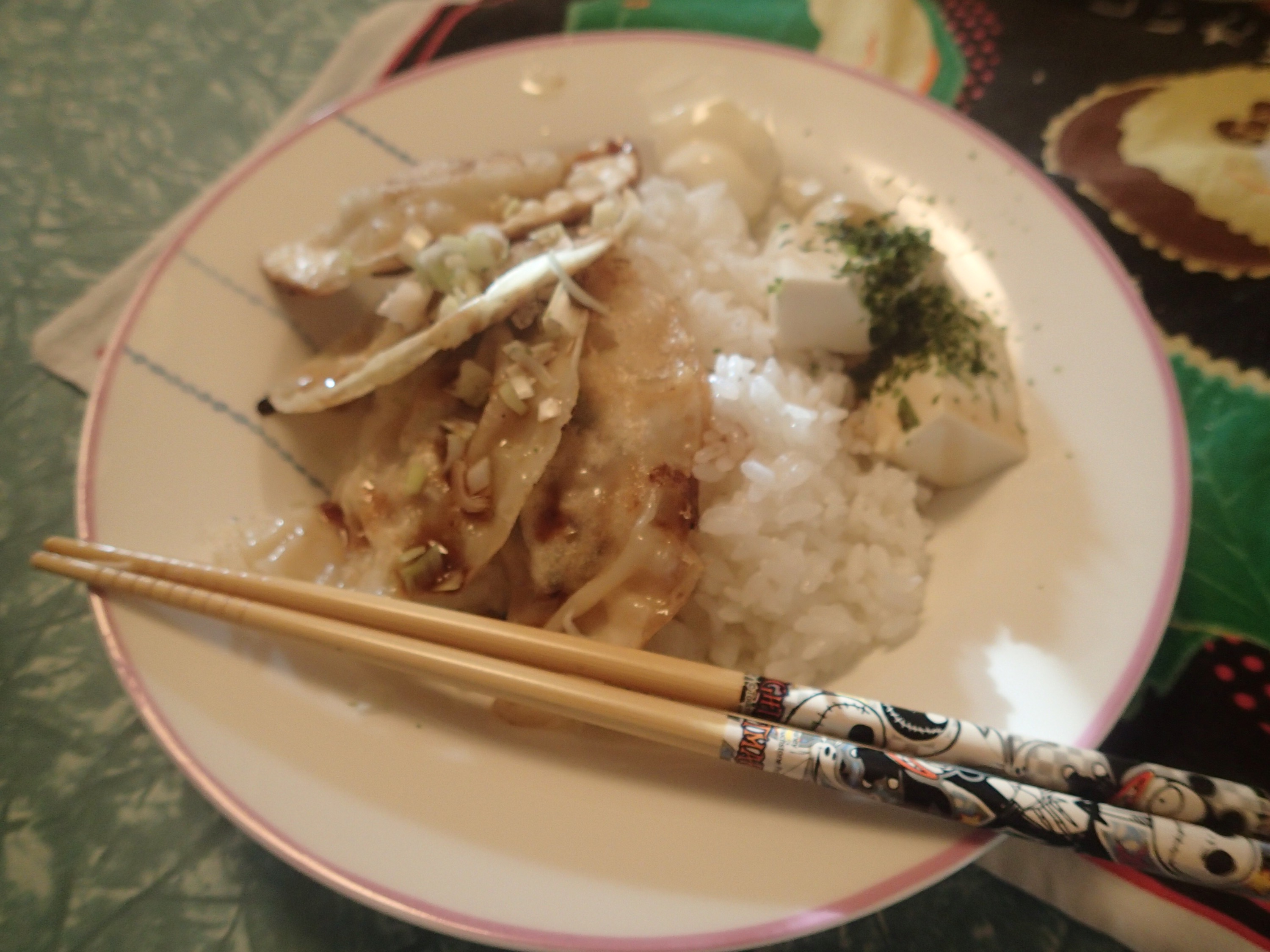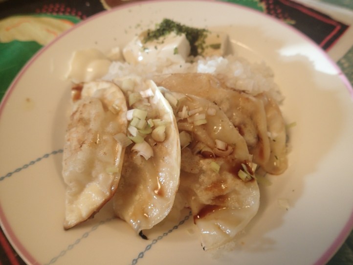I had some leftover chicken gyoza filling in the freezer from when I last made gyoza. So that was handy.