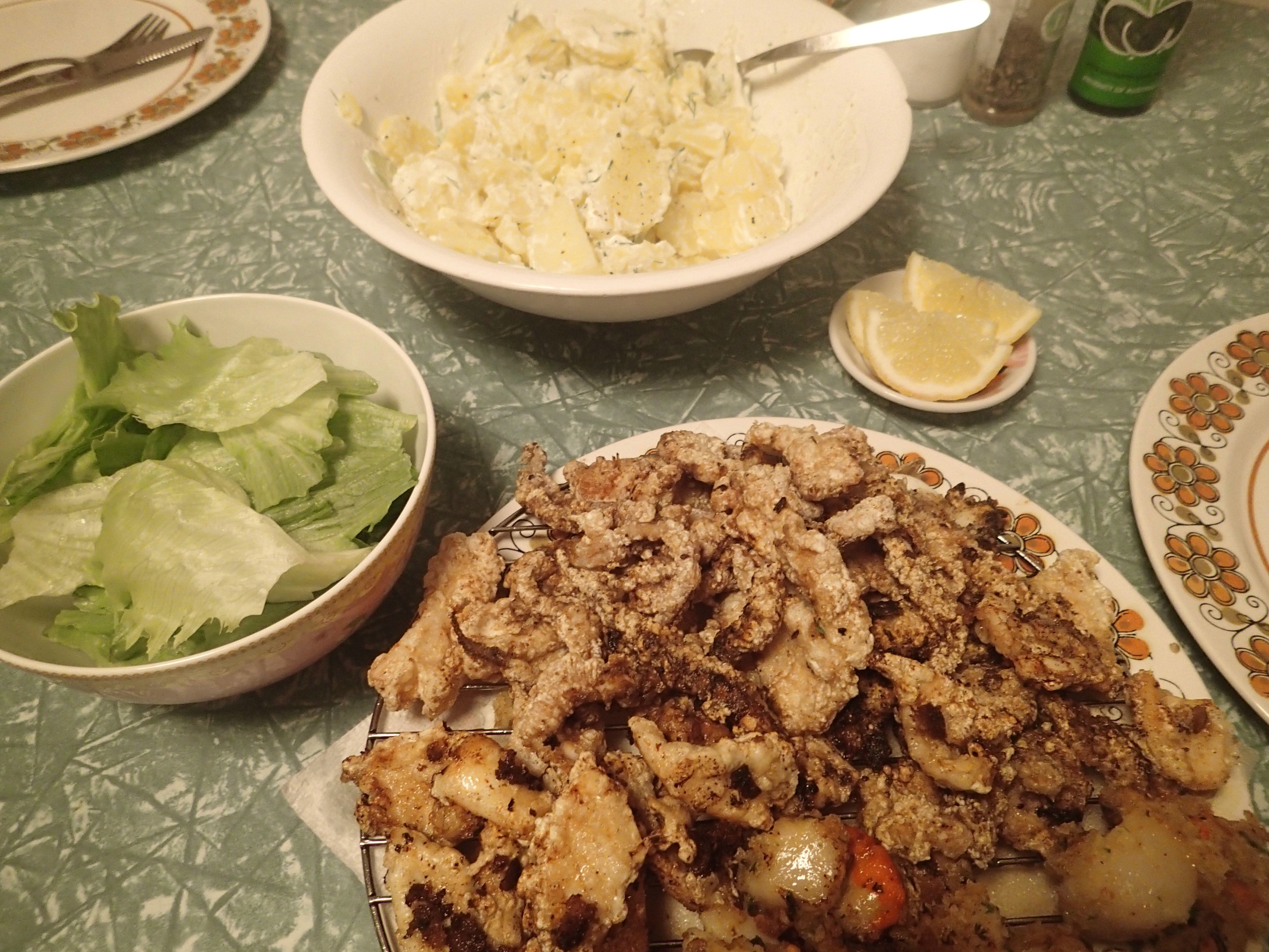 I crumbled the scallops and fried them up and they were SO good. Then salt and pepper squid was alright too.