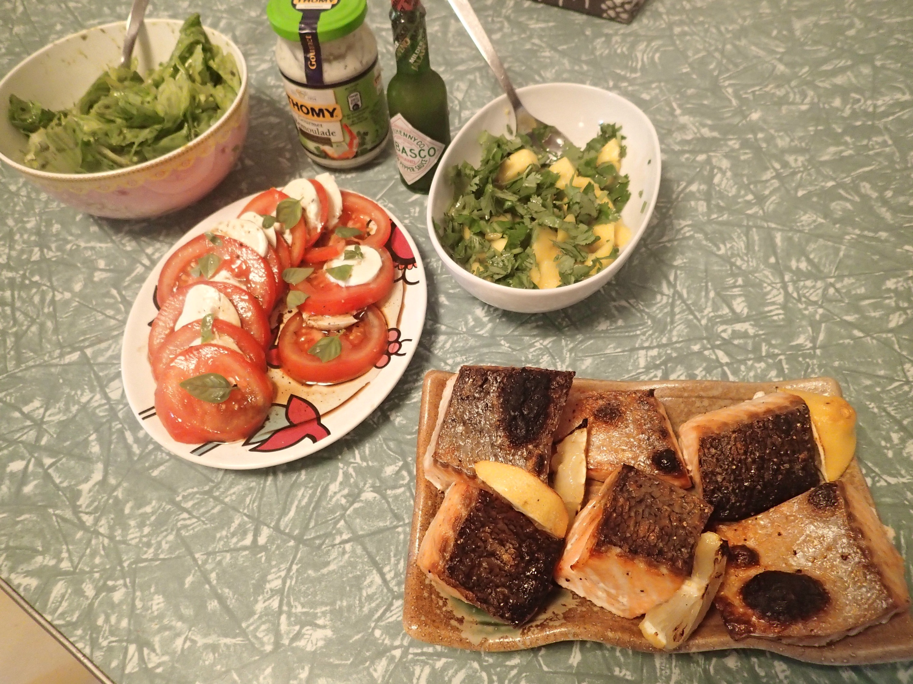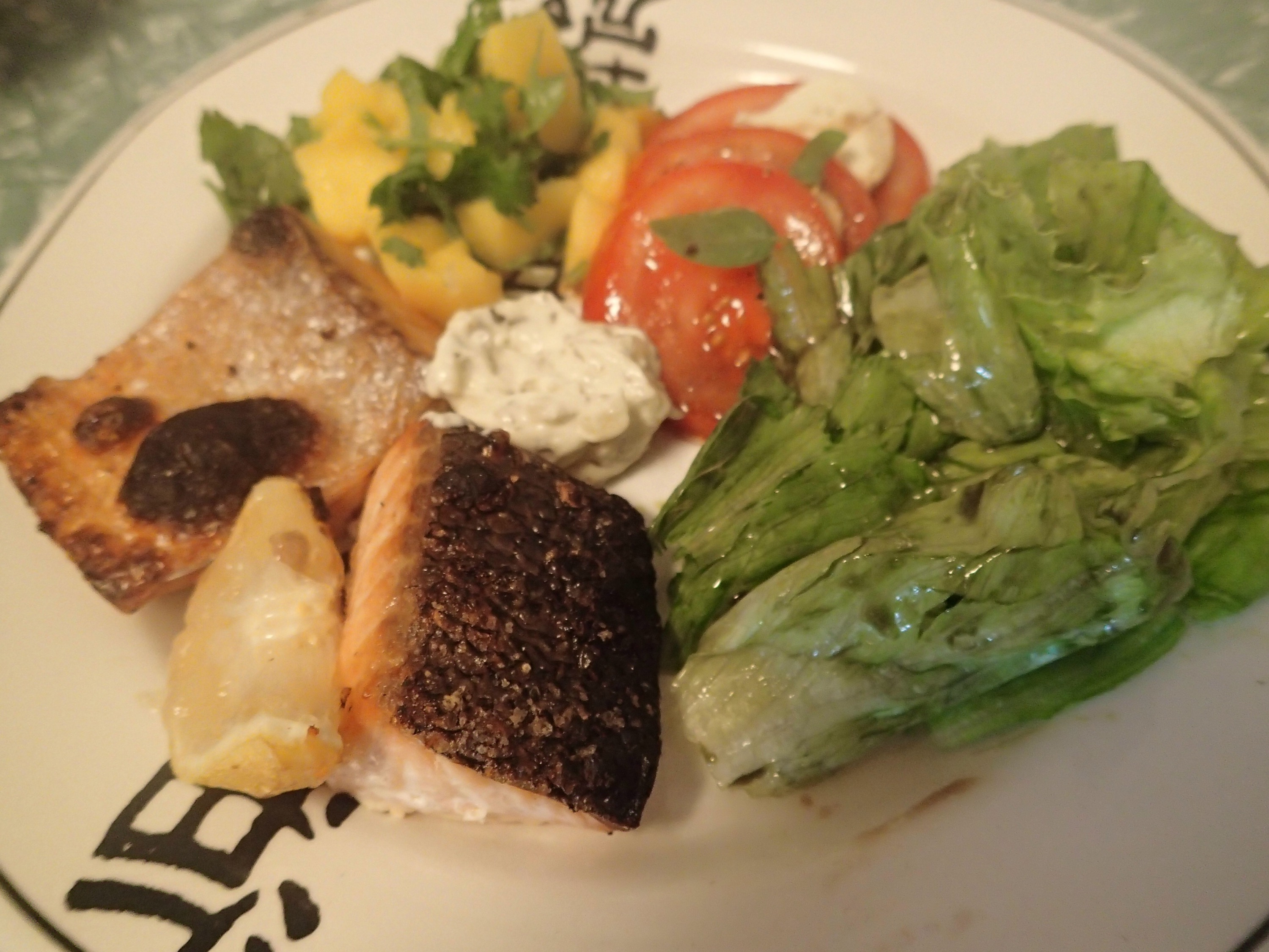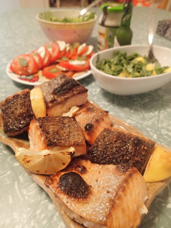 That was a bit of a digression, but we did enjoy the pumpkin seed oil on lettuce with our dinner of grilled salmon. The salmon was especially delicious tonight.